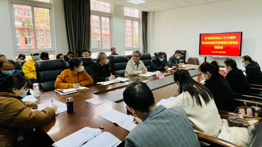 11月23日,机电工程系总支书记杜领在1号教研楼210会议室为全系教职工开展《学习贯彻党的二十大精神,聚精会神抓好发展》的主题宣讲。