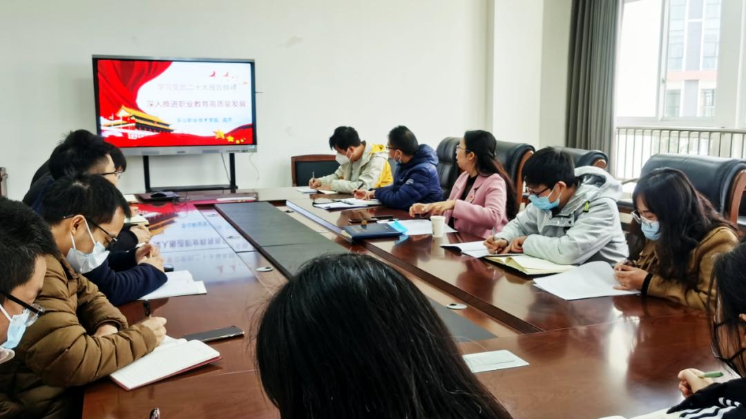 11月30日下午,学院党委委员、副院长周芹为机电工程系教职工作《学习贯彻党的二十大精神,深入推进职业教育高质量发展》主题宣讲活动。周芹从“把握党的二十大的主要成果”“准确理解党的二十大精神”和“推动党的二十大精神在学院落地生根”三个方面进行了重点宣讲。她强调,学习贯彻党的二十大精神,一个首要任务是推动学院高质量发展,落实立德树人根本任务,抓实当前的“双高”建设和本科办学层次的突破。她勉励大家要努力做人民满意的教师,充分发挥能量,齐心协力,为学院的高质量发展贡献重要力量。