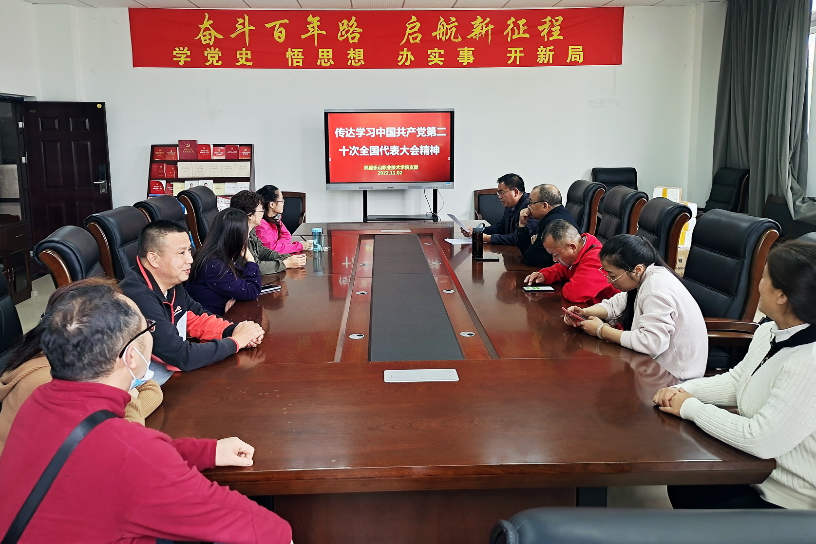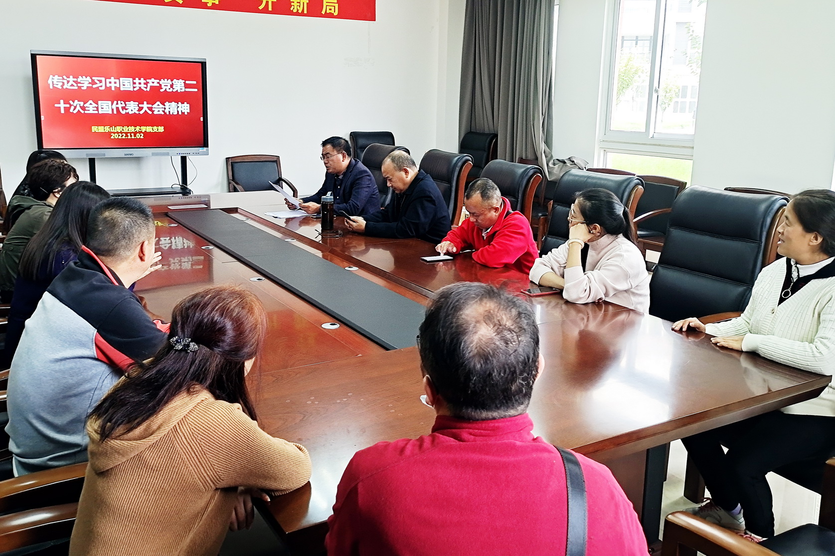 为迅速在盟员中掀起学习领会党的二十大精神热潮,民盟乐职院支部于11月2日下午,在1号教研楼110会议室召开学习贯彻党的二十大精神专题会议,会议由支部主委李澍主持。