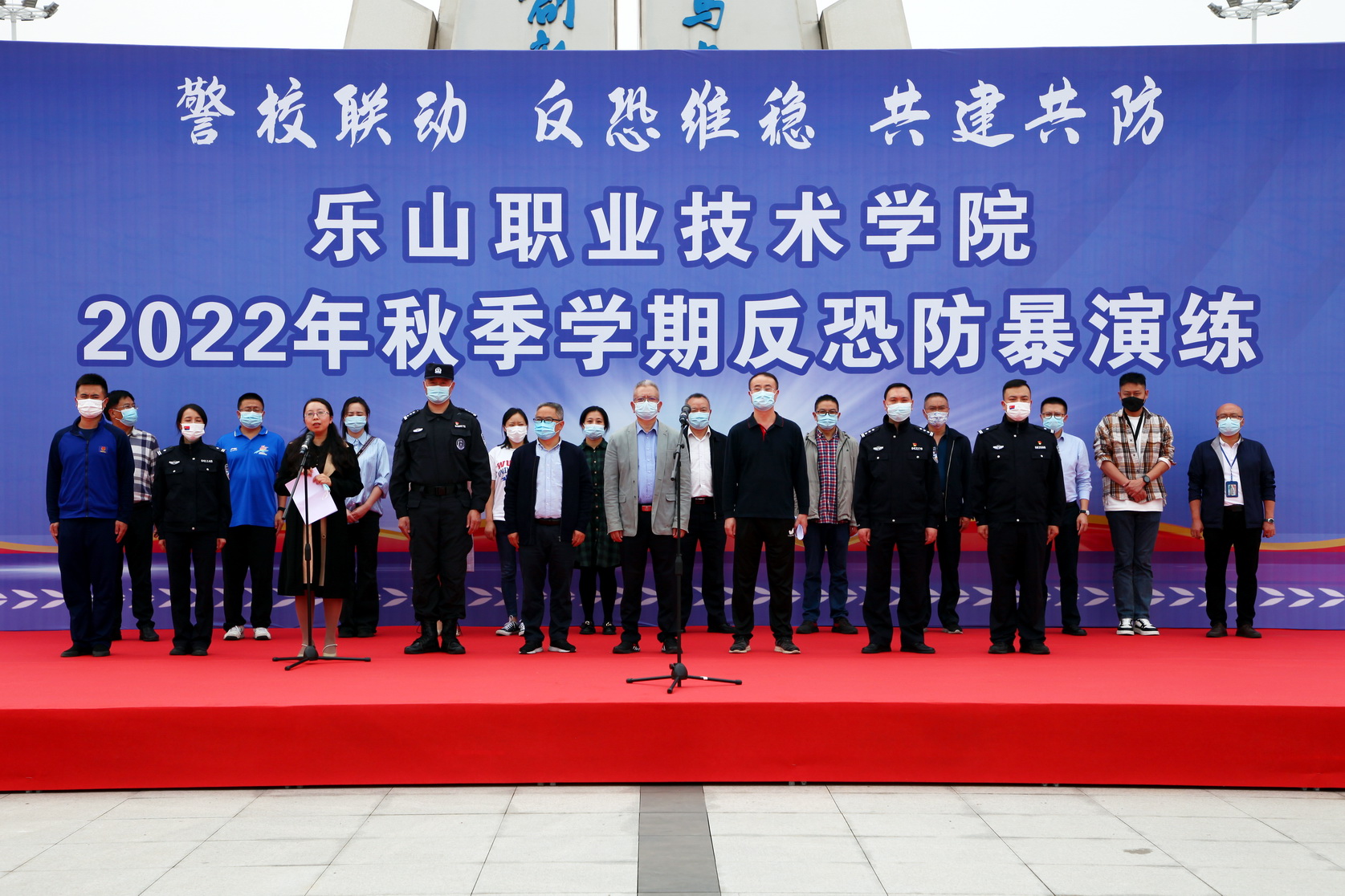 反恐防暴不松懈,守好安全第一关。beat365英国官方网站反恐防暴应急演练于10月19日下午在学院正大门举行。乐山市公安局二级高级警长鄢柏华,巡特警支队长周扬彬,反恐支队政委张烈,乐山市消防救援支队特勤站副站长李晨,乐山市中区公安分局苏稽派出所所长王引,副所长刘燕宇,学院院长刘忠,副院长张学河、周芹,学院相关处室负责人及各系党总支书记、专职副书记等近400余名师生参加本次演练。周芹担任反恐演练总指挥。