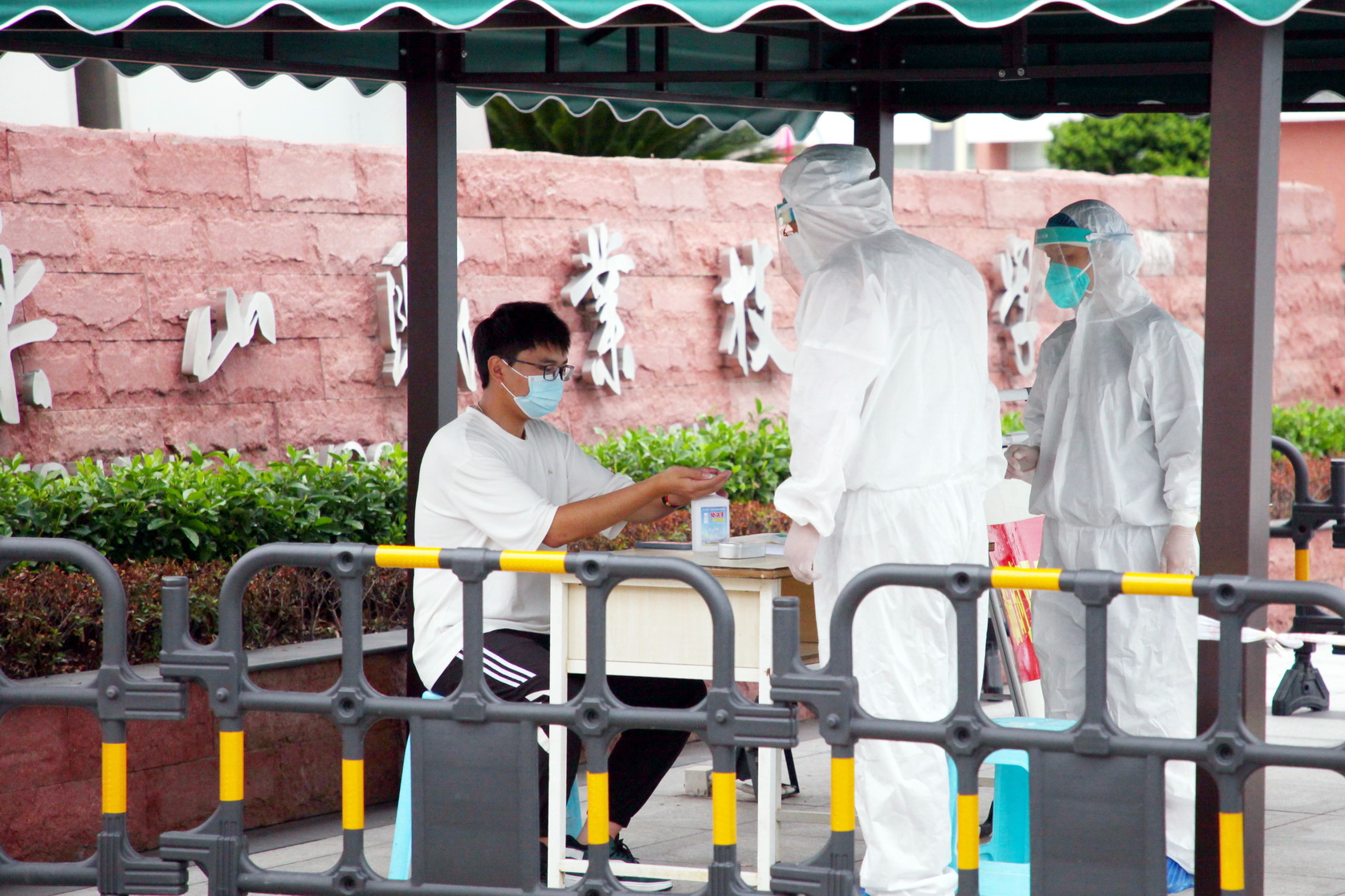 学院大门口,学生工作部组织了30余名学生模拟返校进校门的场景,在现场安保人员和志愿者的引领下,依次检查健康码、行程码、48小时核酸检测阴性证明、体温检测后进入校门。过程中模拟发现黄码人员,立即封闭通道,隔离密接人员,对黄码人员和密接人员分别进行了相应应急处置,随后,对通道和周边环境进行了消毒处理并开通新的备用进校通道。