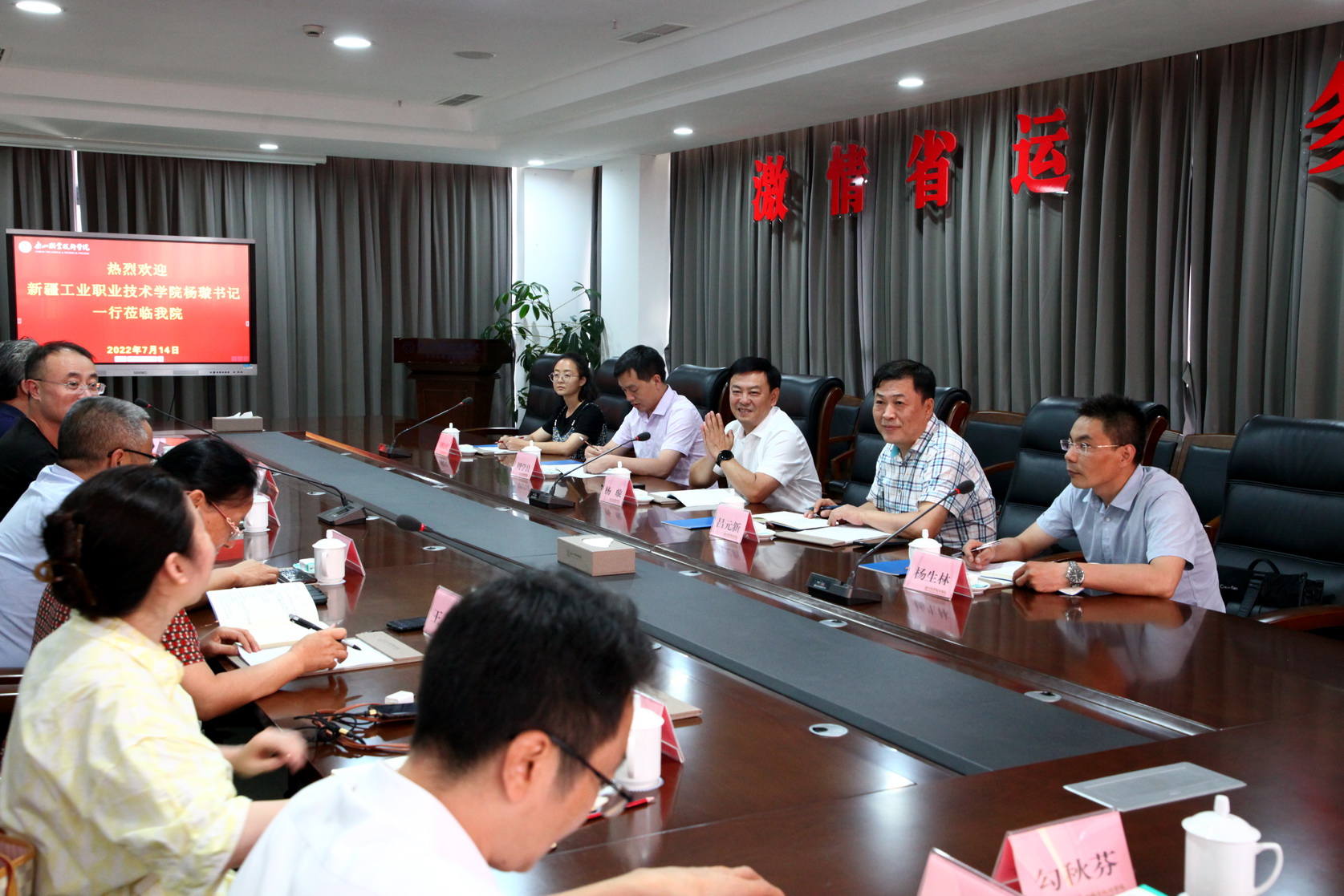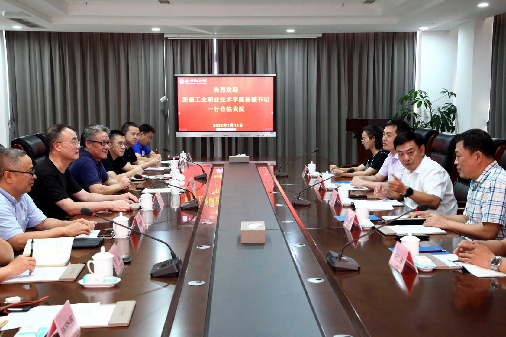 2022年7月14日下午,新疆工业职业技术学院党委书记杨璇一行5人莅临学院访问交流。