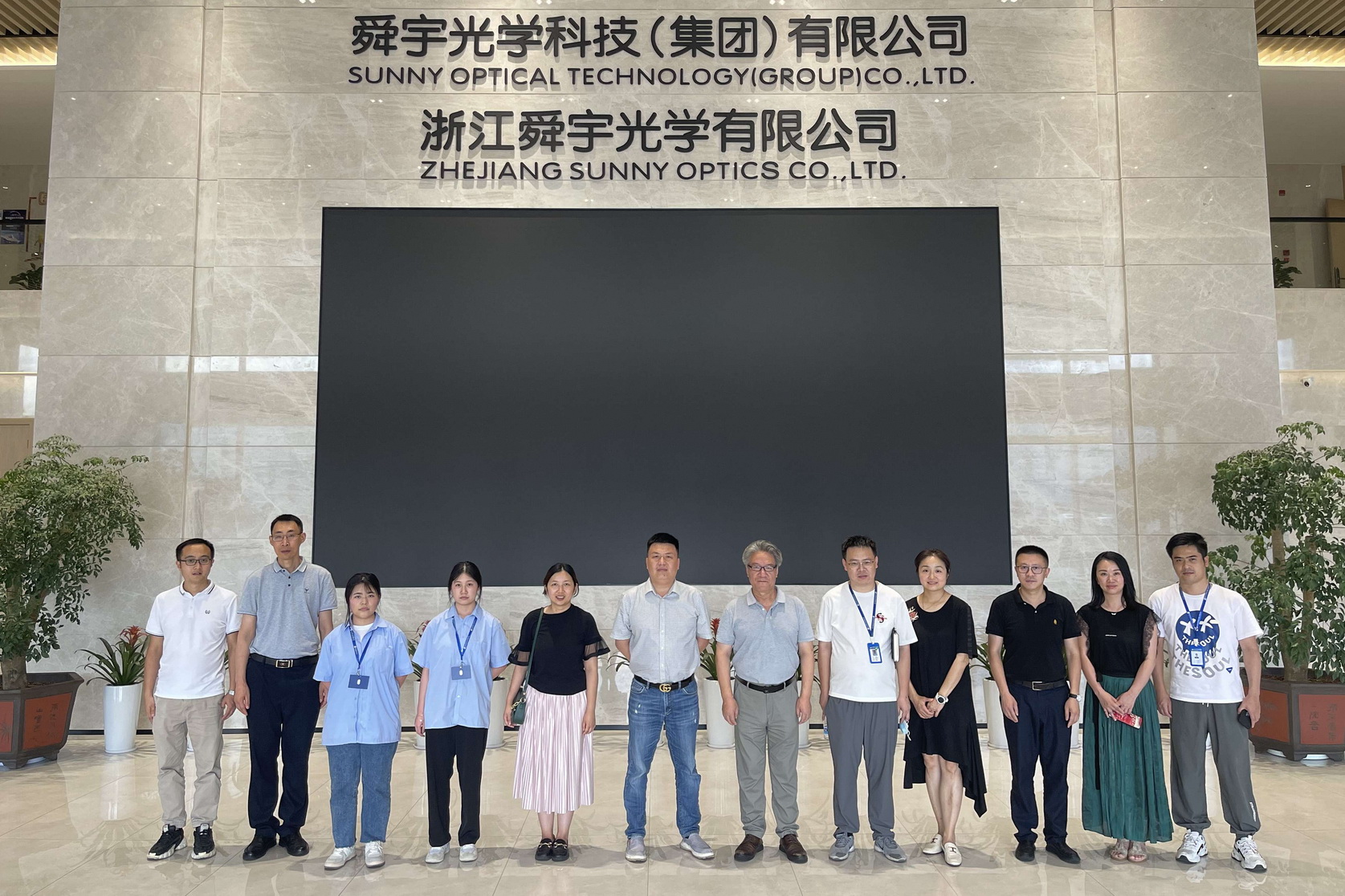 在浙江舜宇光学科技有限公司,双方就校企合作、人才培养相关工作进行了深入交流,达成进一步合作意向;交流结束后,陈芝海看望了留在舜宇光学科技有限公司就业的2022届毕业生。