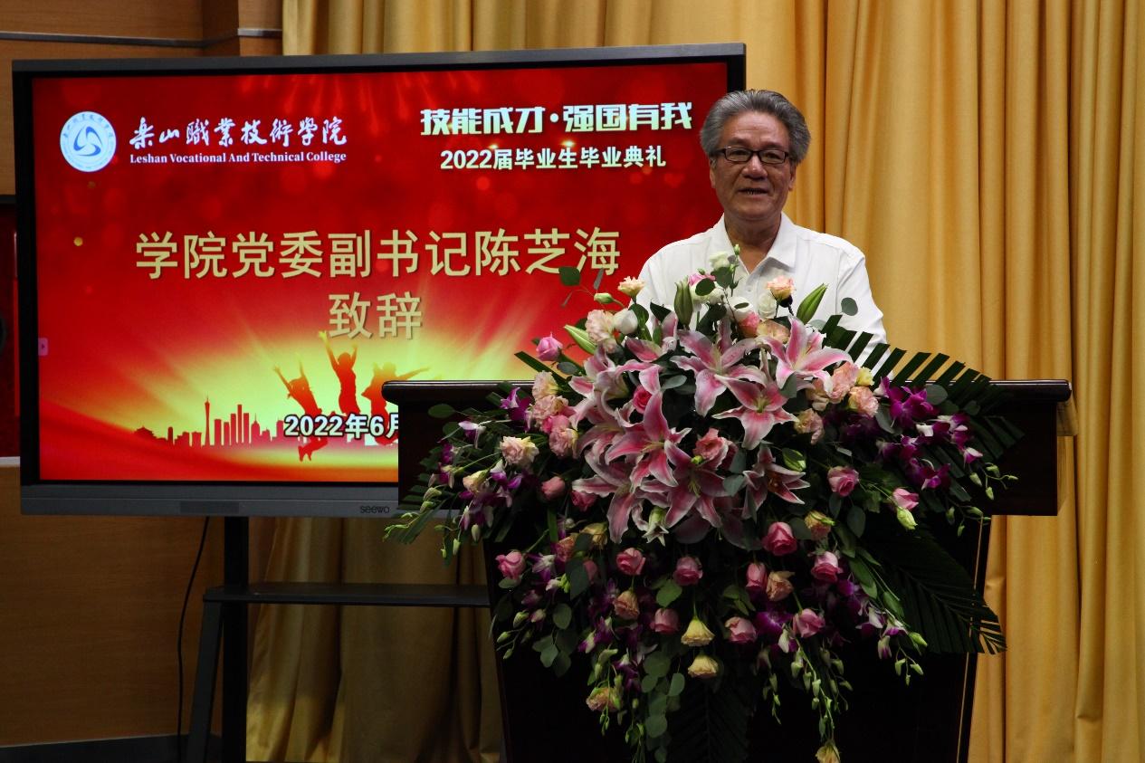 在庄严的国歌声中,毕业典礼正式开始。学院党委副书记陈芝海在典礼致辞中送毕业生三个“希望”:第一是希望大家要有担当,这是“志气”;第二是希望大家要正直,这是“骨气”;第三是希望大家要有自信,这是“底气”。他希望2022届毕业生们一定要以“读万卷书、行万里路”的觉悟,用思想和行动去丈量这个世界;牢记“诚信、笃志、求真、创新”的校训,成为一名优秀的“能工巧匠和大国工匠”。