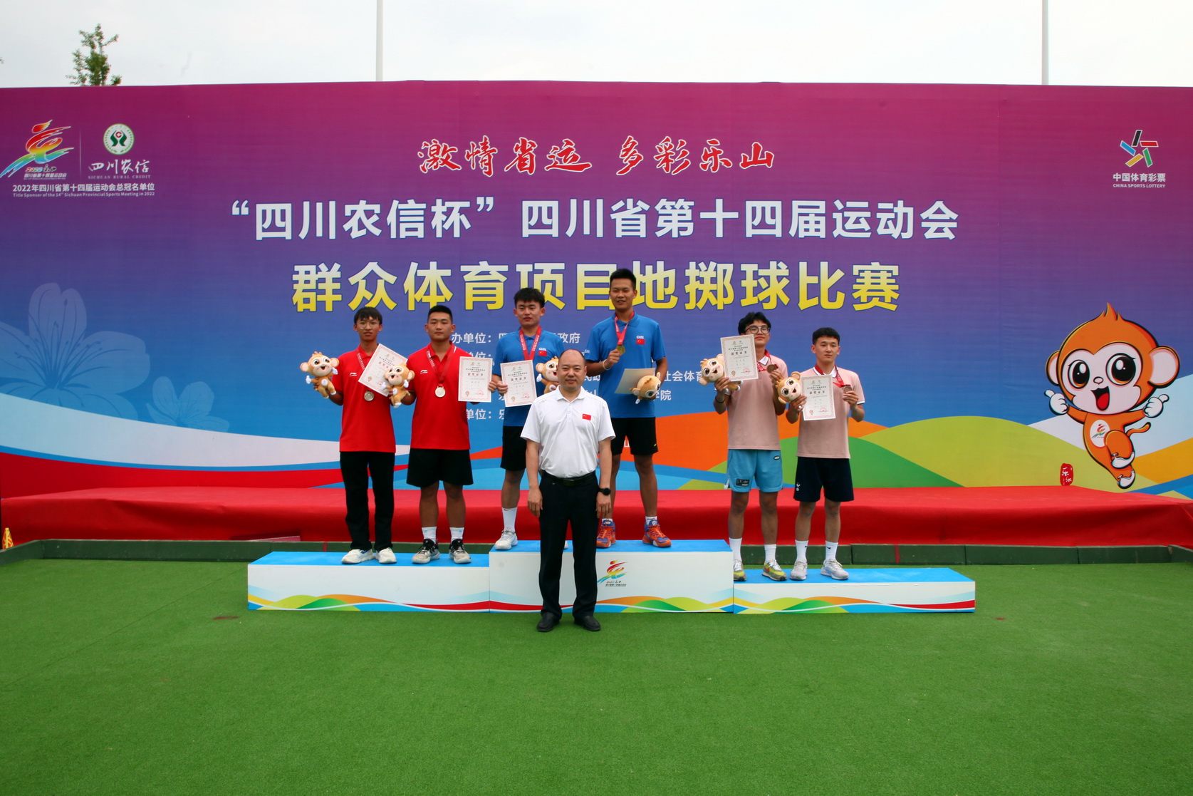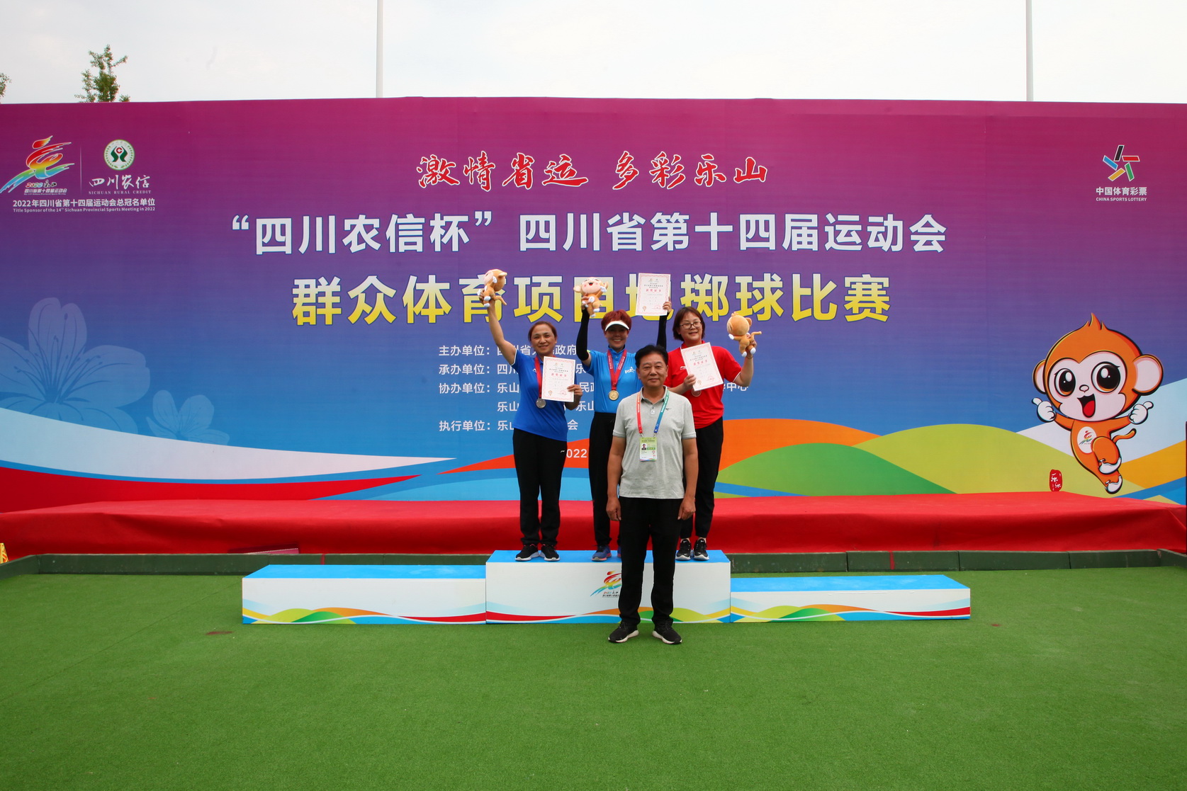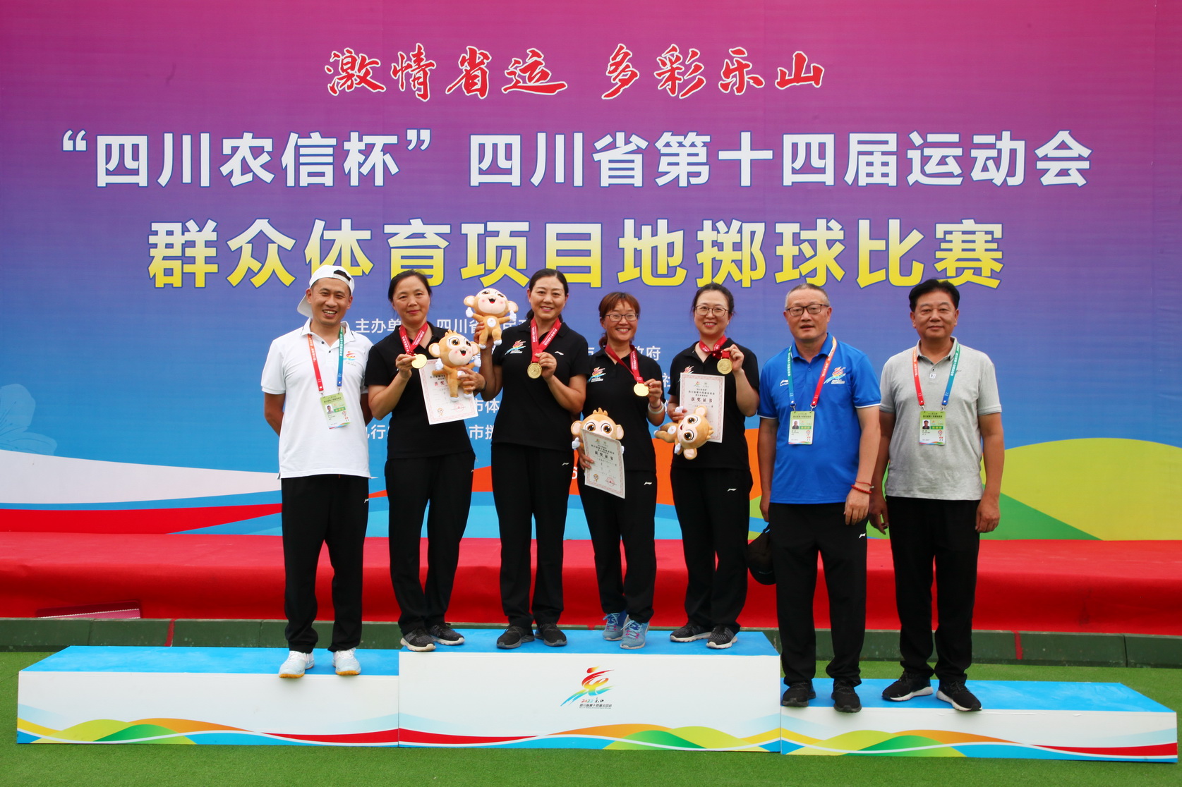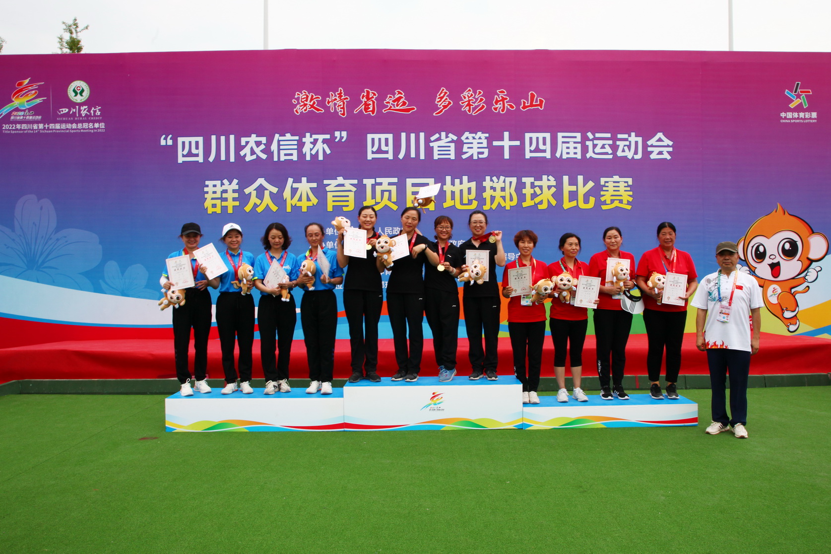其中,“小金属球中年女子三人赛”第一名乐山队,第二名攀枝花队,第三名凉山队,第四名南充队,第五名泸州队,第六名绵阳队,第七名广元队。