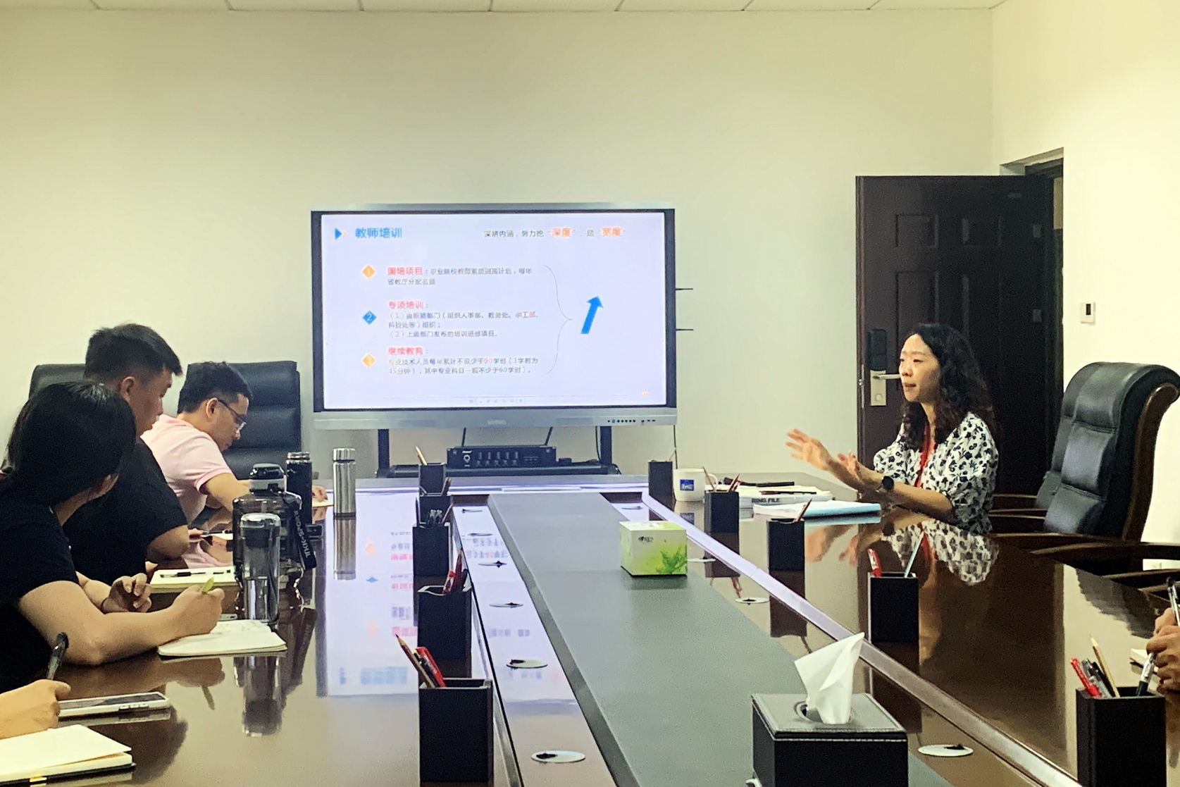 培训会上,应桦向新老师介绍了《教职工聘期届满考核办法》《教职工岗位年度考核办法》《人才引进管理办法》《专项奖励管理办法》等人事制度以及《新进教师规范化培训实施办法》《“双师型”教师认定办法》《“青俊进阶计划”实施办法》《专业技术职称自主评审办法》等师资制度,以丰富的案例为载体,将枯燥无味的规章制度讲解得深入透彻。应桦指出,人事师资制度是教师们日常工作和自身发展的重要“指南”,希望大家勤学习、懂政策、严自律。最后,对照“四有四度”教师要求,即“有理想信念、有道德情操、有扎实学识、有仁爱之心”和“有气度、有深度、有风度、有温度”,应桦还希望大家能对标竞进、勇于担当、勤于思考,早日成为一名合格的人民教师。