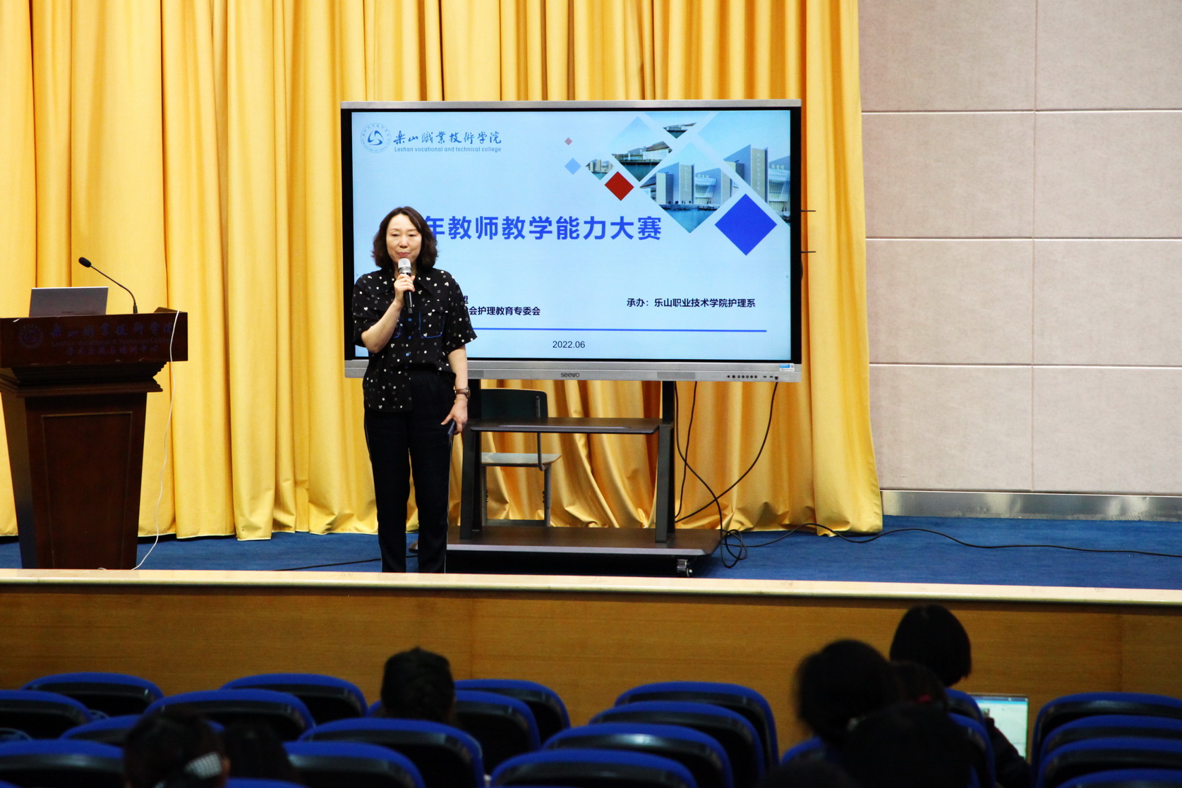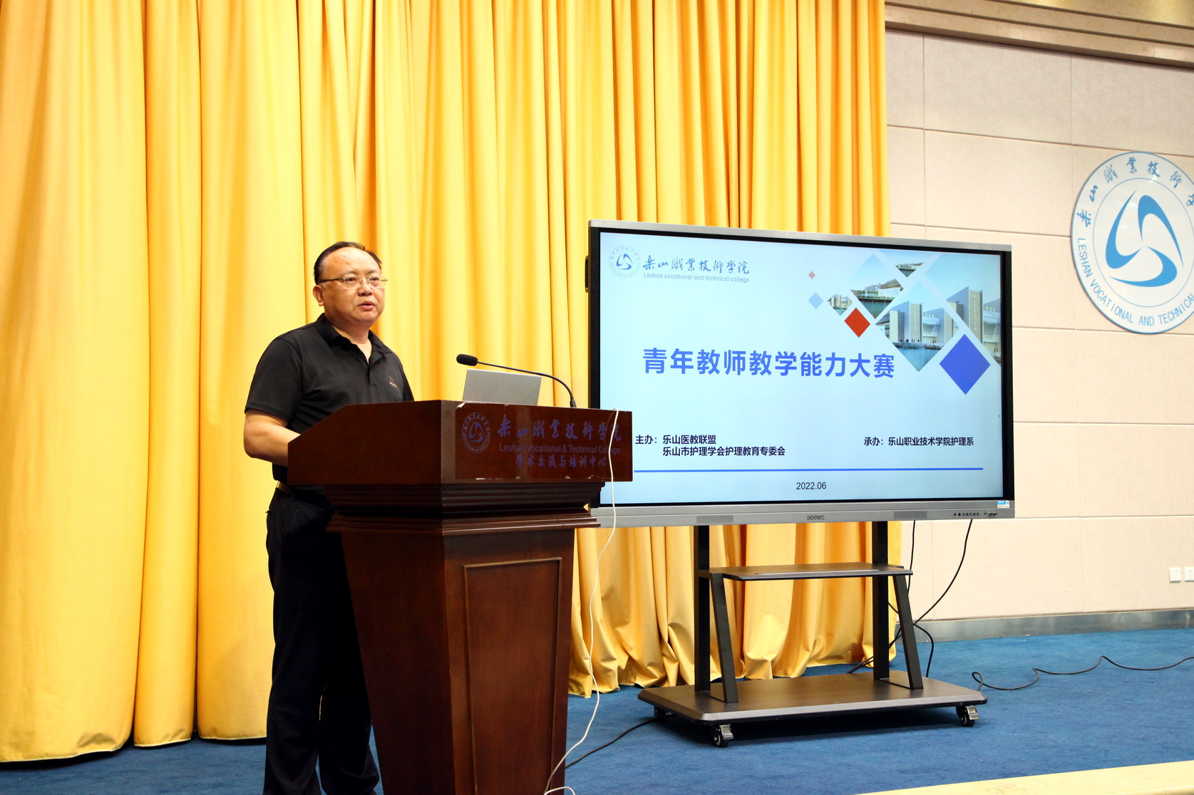 封家福在致辞中对嘉宾、领导、参赛联盟成员单位、参赛选手莅临学院表示热烈欢迎。护理系副主任史良俊介绍本次参赛选手名单、比赛规则后宣布比赛开始。参赛选手按抽签顺序依次比赛,现场专家评委按照《乐山医教联盟青年教师教学能力比赛教案评分表》《乐山医教联盟青年教师教学能力讲课比赛评分表》细则进行了现场评分。