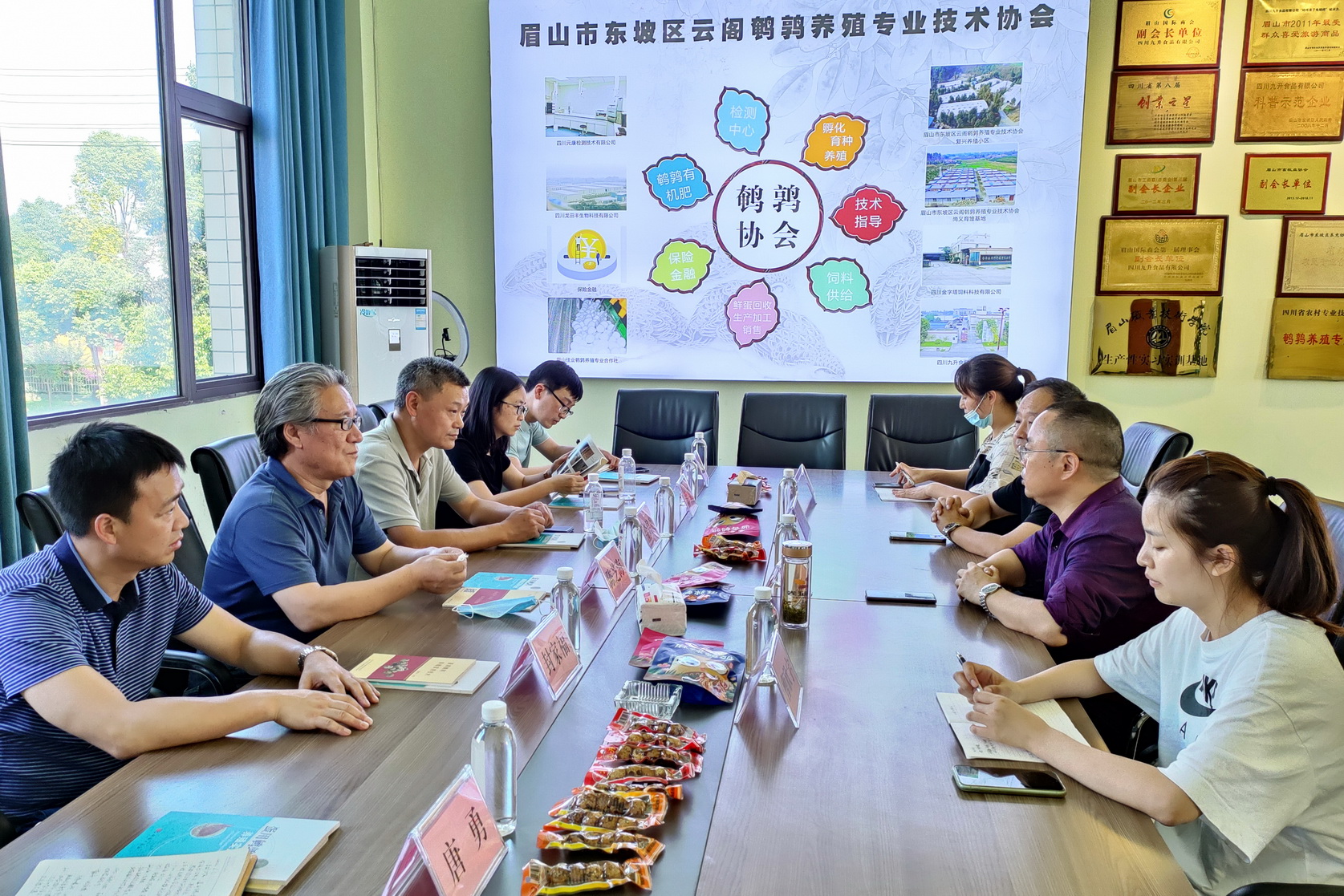 陈芝海一行先后参观考察了该公司下属的眉山市东坡区云阁鹌鹑养殖专业合作社、眉山佳业鹌鹑养殖专业合作社孵化车间和专业养殖基地,四川金字塔饲料科技有限公司中段饲料生产车间,四川九升食品有限公司鹌鹑蛋、鹌鹑肉终端食品生产车间,全面了解了四川九升食品有限公司鹌鹑产品全产业链。