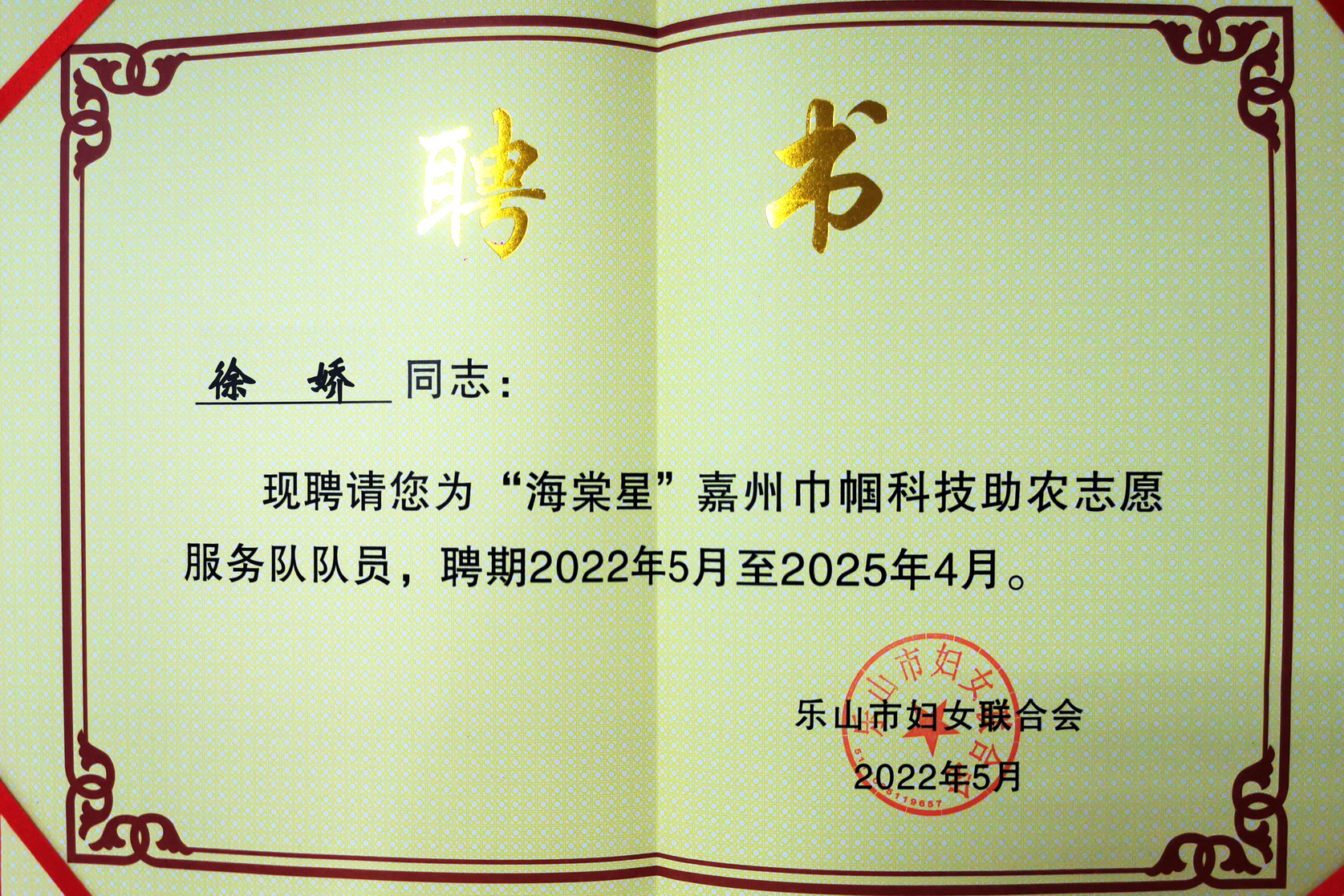 5月25日,乐山市妇女联合会组织召开乡村振兴巾帼人才培养计划启动仪式。乐山市委常委、统战部部长郭捷出席会议。会上,乐山市委组织部、市妇联、市科技局、市农业农村局、市科协相关领导向“海棠星”嘉州巾帼科技助农志愿服务队队员颁发聘书。beat365英国官方网站鲜凌瑾、徐娇两位博士入选服务队。