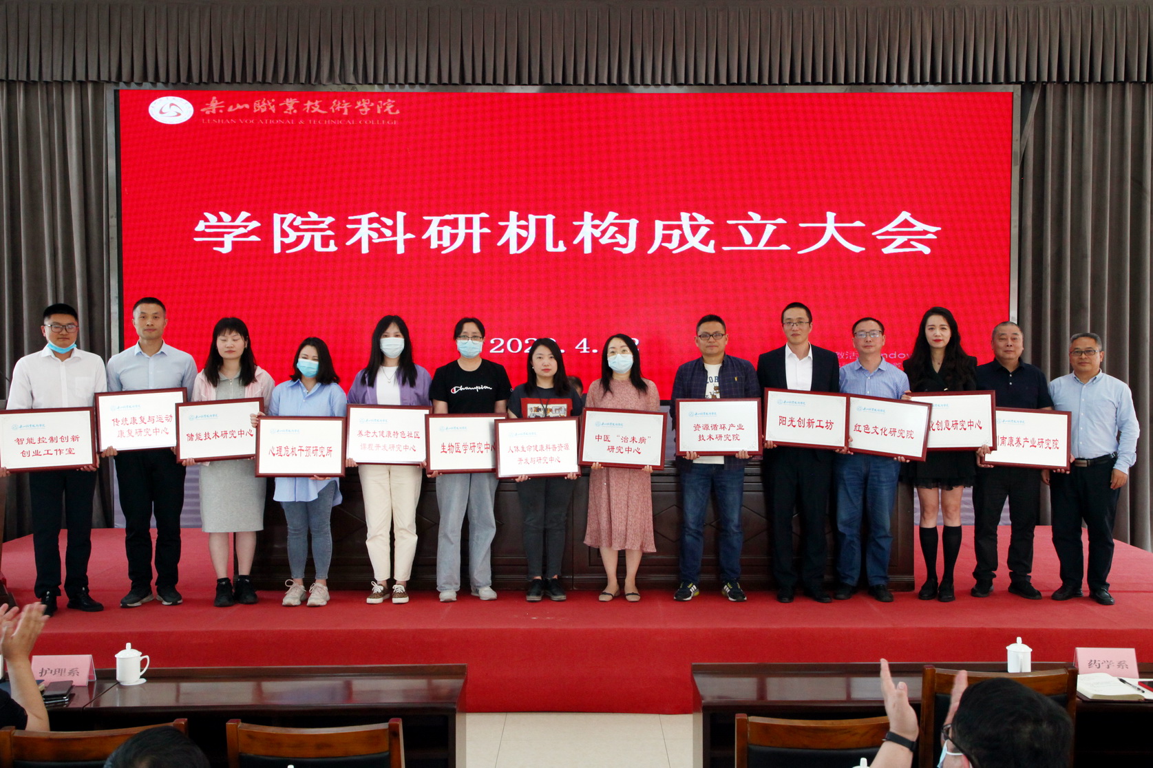会上,刘忠、张学河分别为5个市级科研机构和25个院级科研机构授牌。