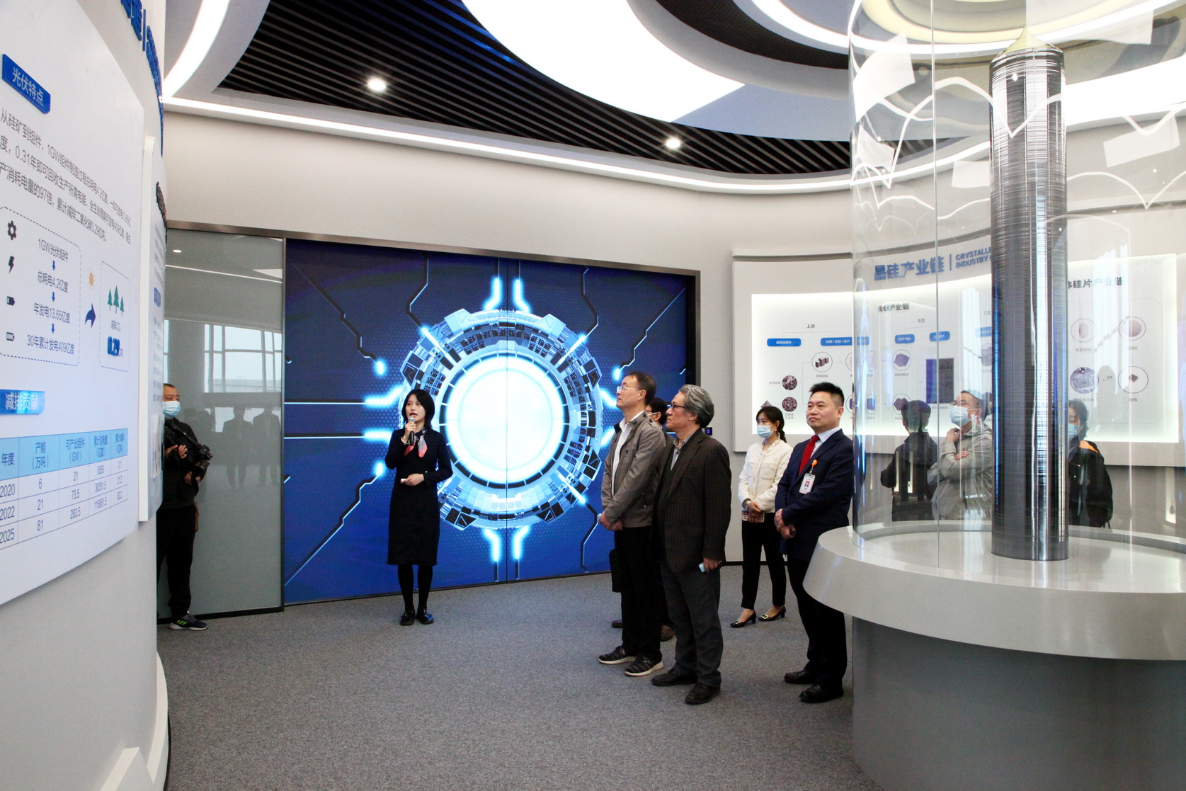 在五通桥区政府副区长郑重、区政协副主席龚明君陪同下,刘忠一行深入五通桥区光伏产业园区,先后考察调研了四川晶科能源有限公司、乐山市京运通新材料科技有限公司、乐山协鑫新能源科技有限公司、高测科技股份有限公司、永祥新能源有限公司等企业。刘忠一行进入企业车间,参观了解企业运行状况,与企业相关负责人交流产教融合、人才培养相关事宜。