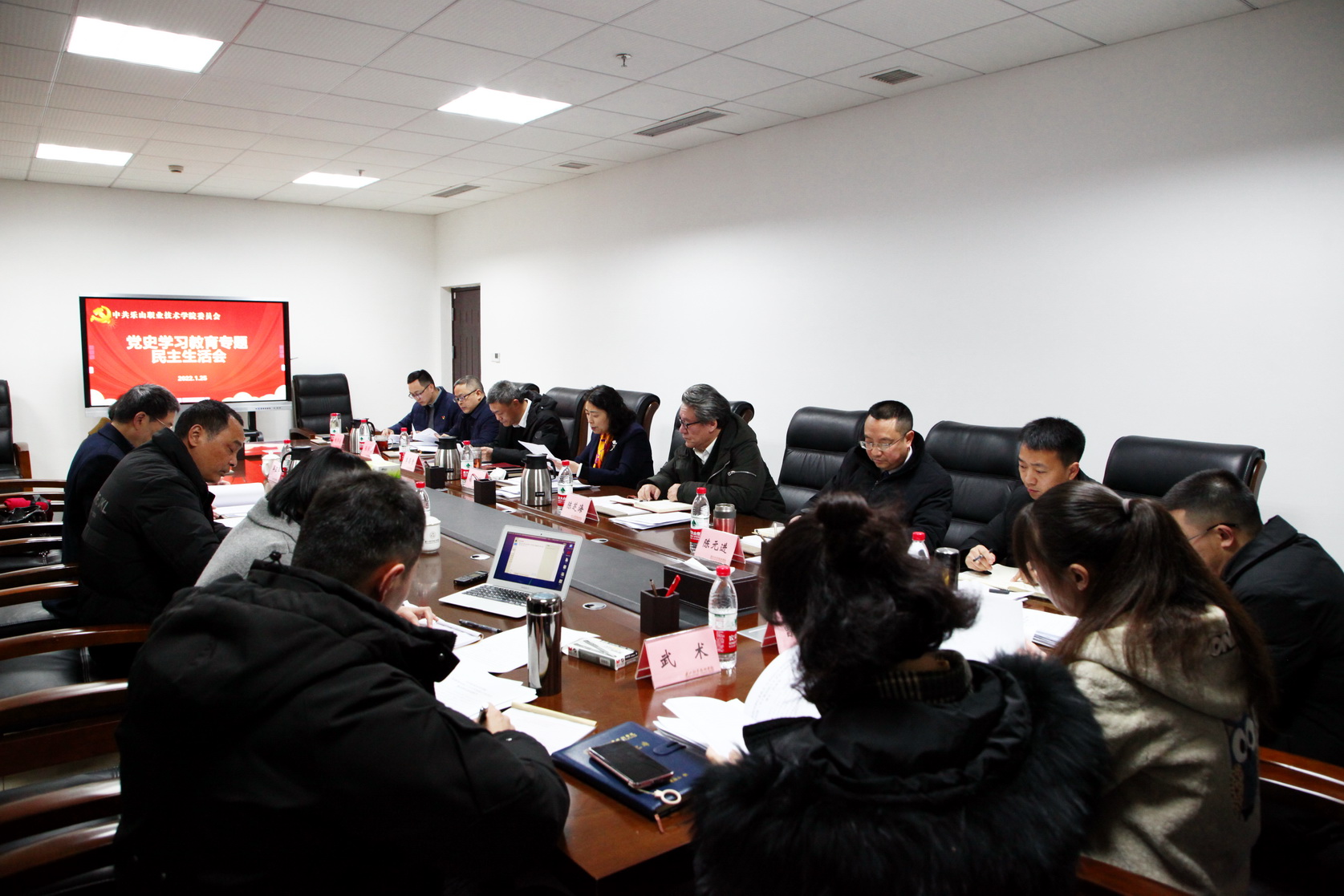 2022年1月25日,学院党委在行政楼424会议室召开了院级领导班子党史学习教育专题民主生活会。此次会议主题为:大力弘扬伟大建党精神,坚持和发展党的百年奋斗历史经验,坚定历史自信,践行时代使命,厚植为民情怀,勇于担当作为,团结带领人民群众走好新的赶考之路,奋力谱写全面建设社会主义现代化乐山新篇章,为推动新时代治蜀兴川再上新台阶、全面建成社会主义现代化强国、实现中华民族伟大复兴的中国梦贡献乐山力量。会议由党委书记易群主持,党员领导班子成员参加了会议。