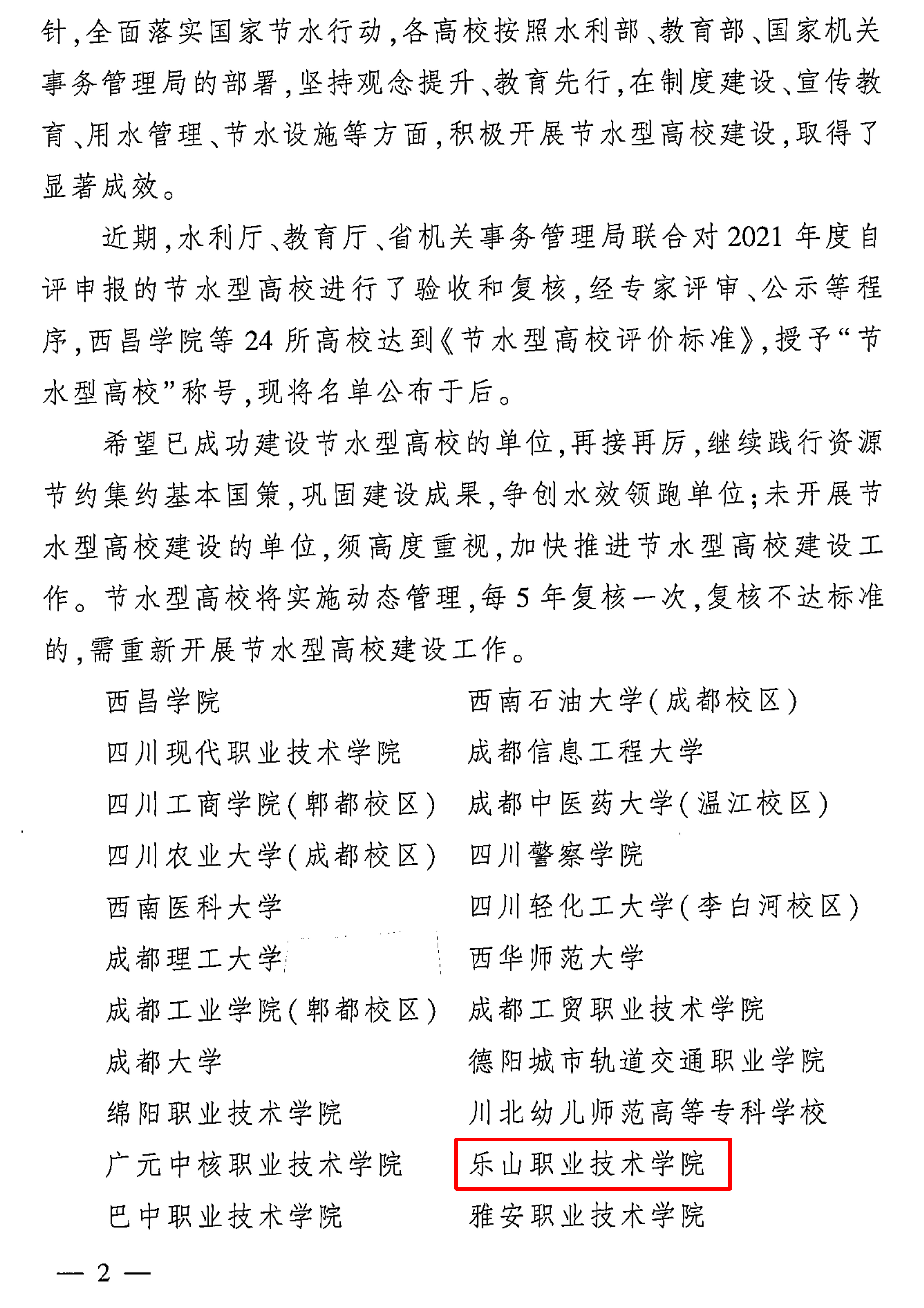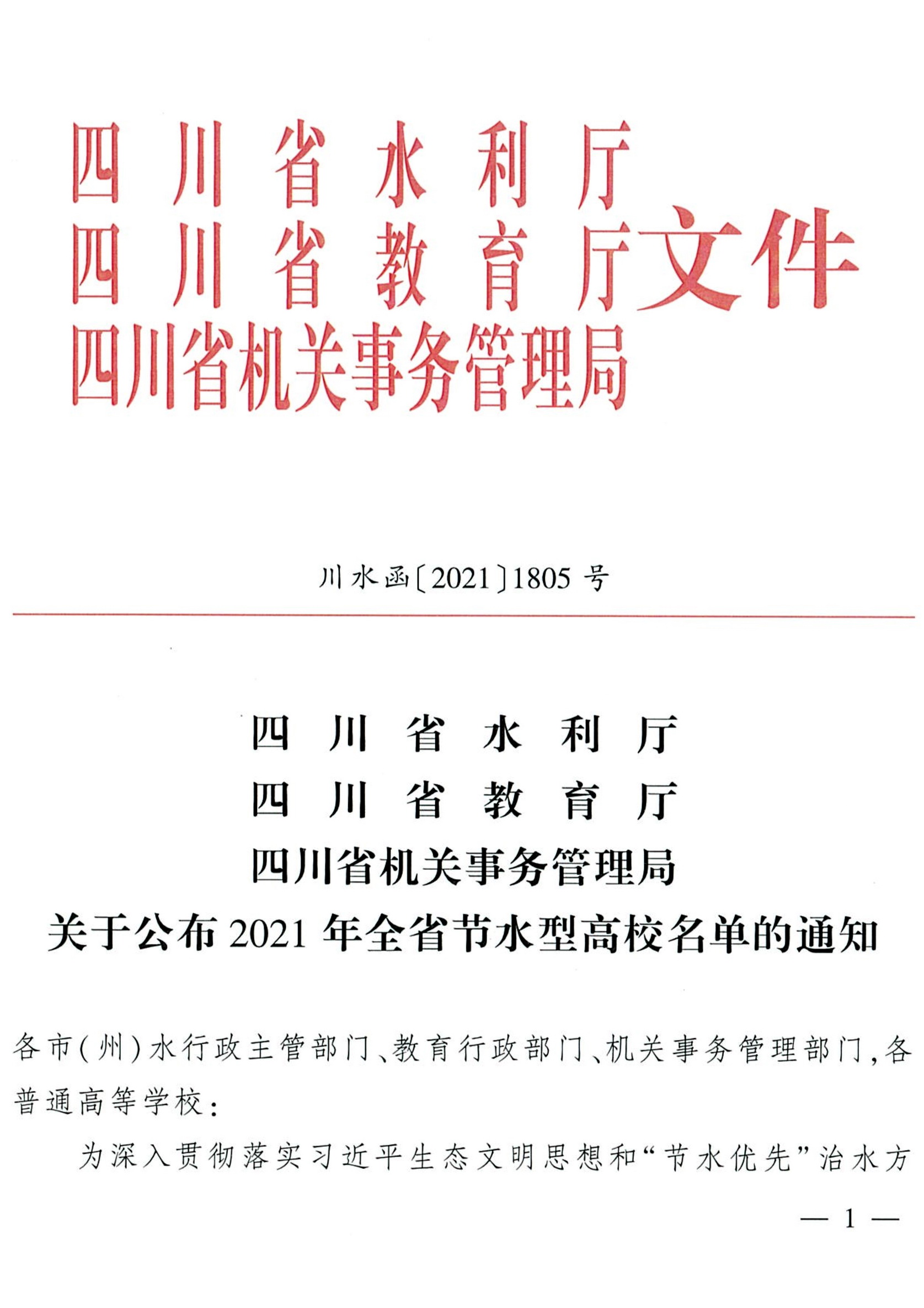 近日,beat365英国官方网站被四川省水利厅、省教育厅、省机关事务管理局联合授予“四川省节水型高校”荣誉称号。