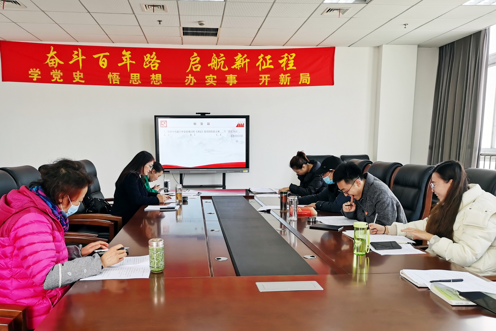 为考察大家的学习效果,现场进行了“学习党的十九届六中全会精神”知识竞赛活动,支部八位党员同志参加了专题竞赛。姚佳秀、杨高、周永红、闫晓婷、于登辉、王守梅、周雅美、柳宇分获一、二、三等奖。