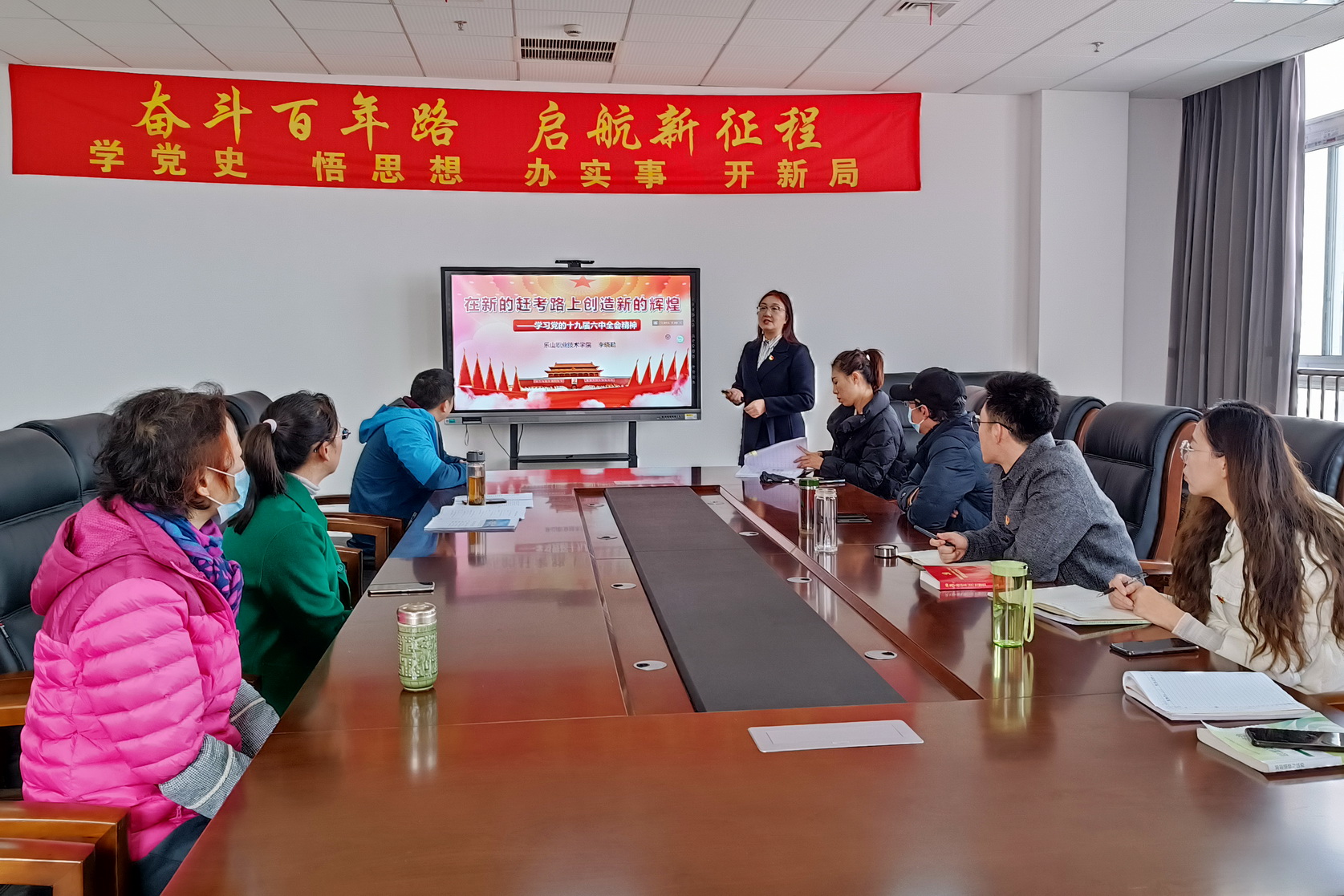 2021年12月1日中午,马克思主义学院党总支教工一支部(全省高校党建工作样板支部培育单位)在1号教研楼410会议室,举办了党的十九届六中全会精神集体学习活动,活动由支部书记李晓勤主持,支部全体党员参加。
