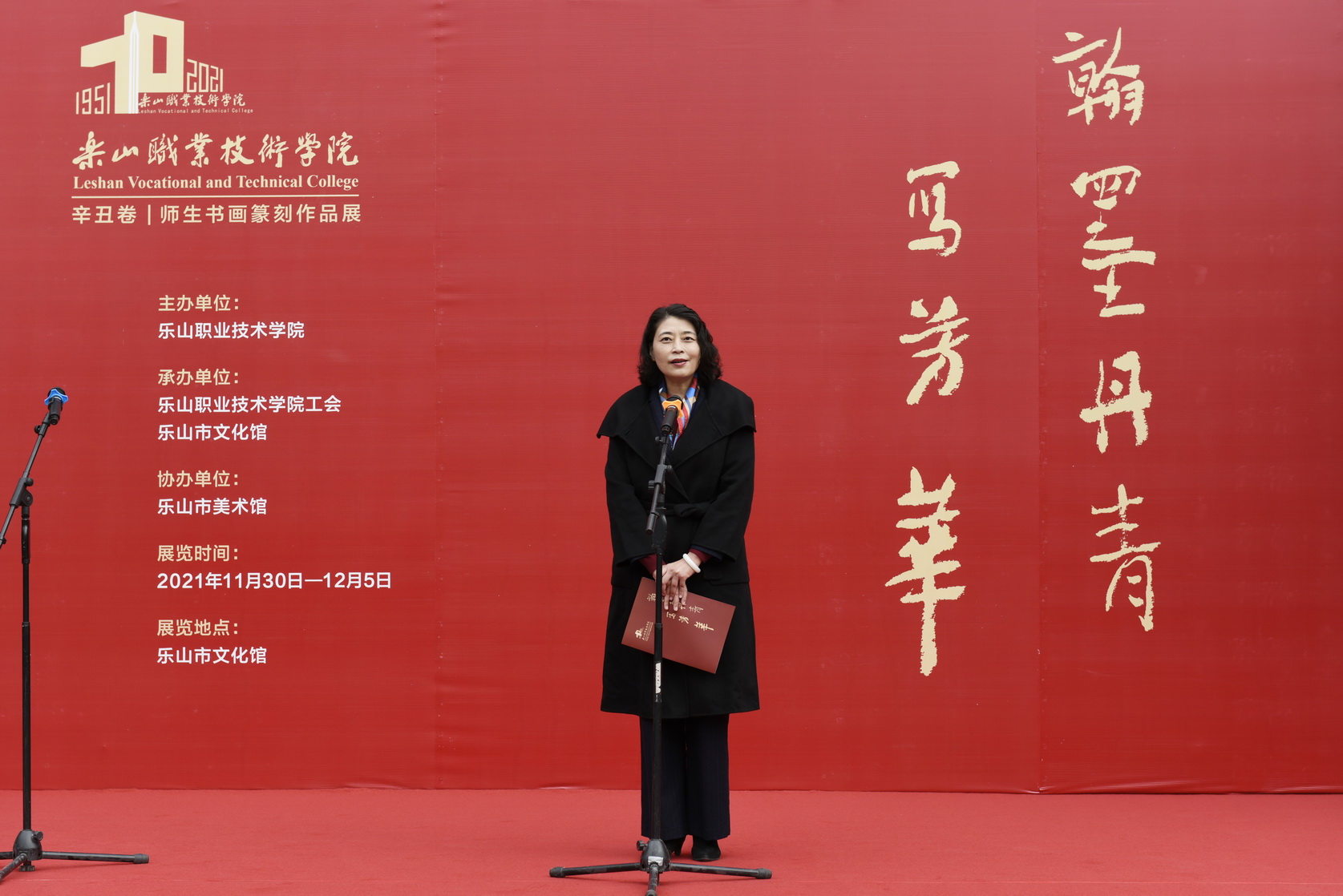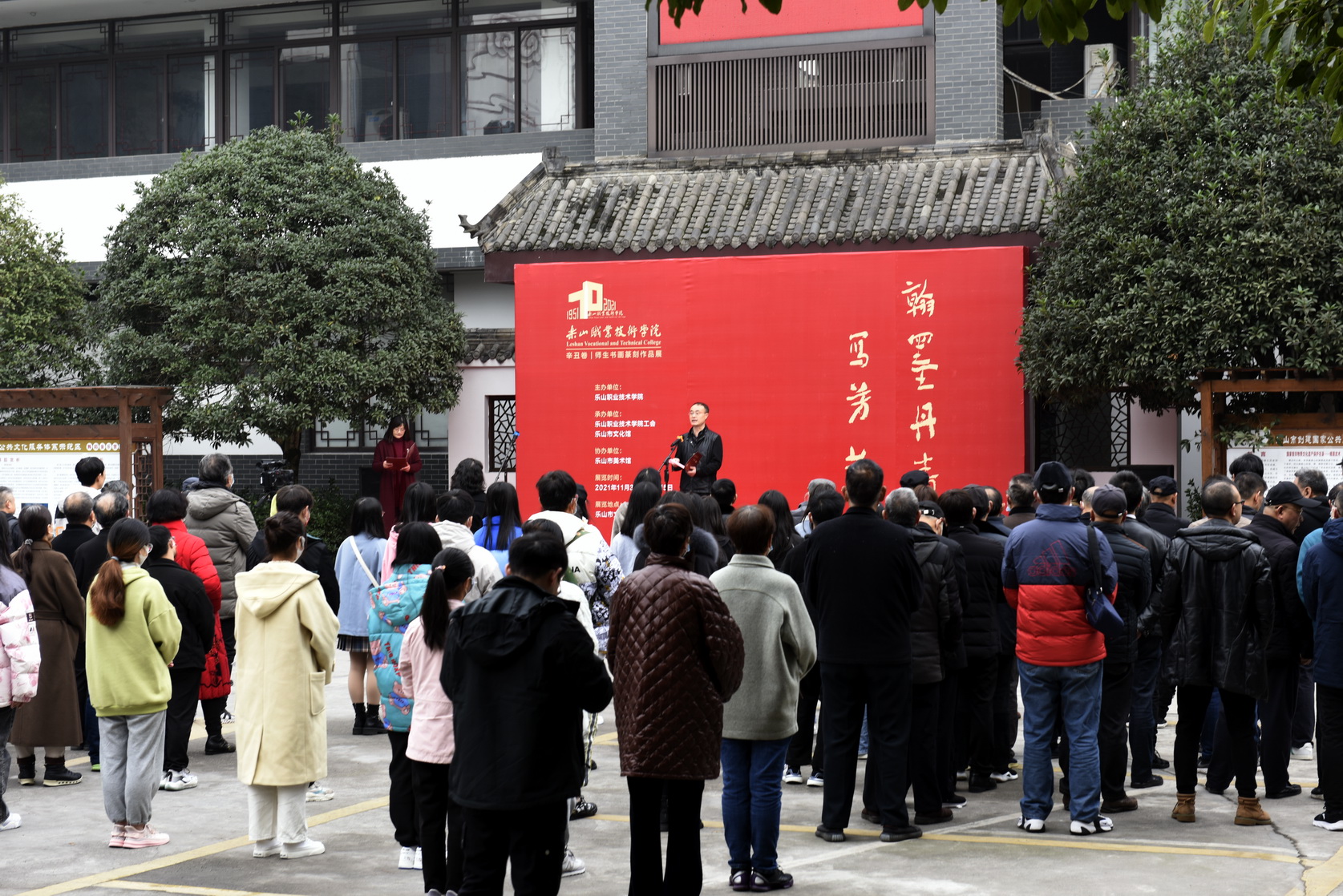 2021年11月30日上午,由学院主办,院工会、乐山市文化馆承办、乐山市美术馆协办的“翰墨丹青写芳华”师生书画篆刻展,在乐山市文化馆举行了隆重的开幕仪式。学院院长刘忠致开幕词,乐山市美术家协会主席李开能、乐山市文联调研员、创联部部长刘飘飘、乐山市总工会四级调研员、直属机关党委副书记付志勇分别作了讲话,充分肯定了学院职工文化活动。出席开幕式的还有乐山市教育局副局长周芹、乐山市文化馆馆长李旭东、乐山市美术馆馆长魏源、中国美术家协会会员、眉山市美术家协会主席袁泉、乐山市书法家协会副主席、乐山市文联原副主席甘良,以及来自乐山市美术家协会、乐山市书法家协会、嘉州画院、乐山书画院、犍为画院、沙湾画院和乐山书画界知名书画篆刻家40余人,学院热爱书画艺术的师生参加了开幕式。开幕式由学院工会副主席黄晓莉主持。