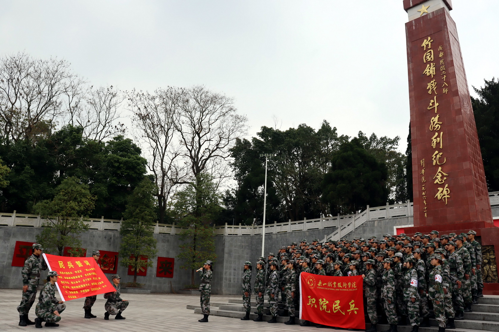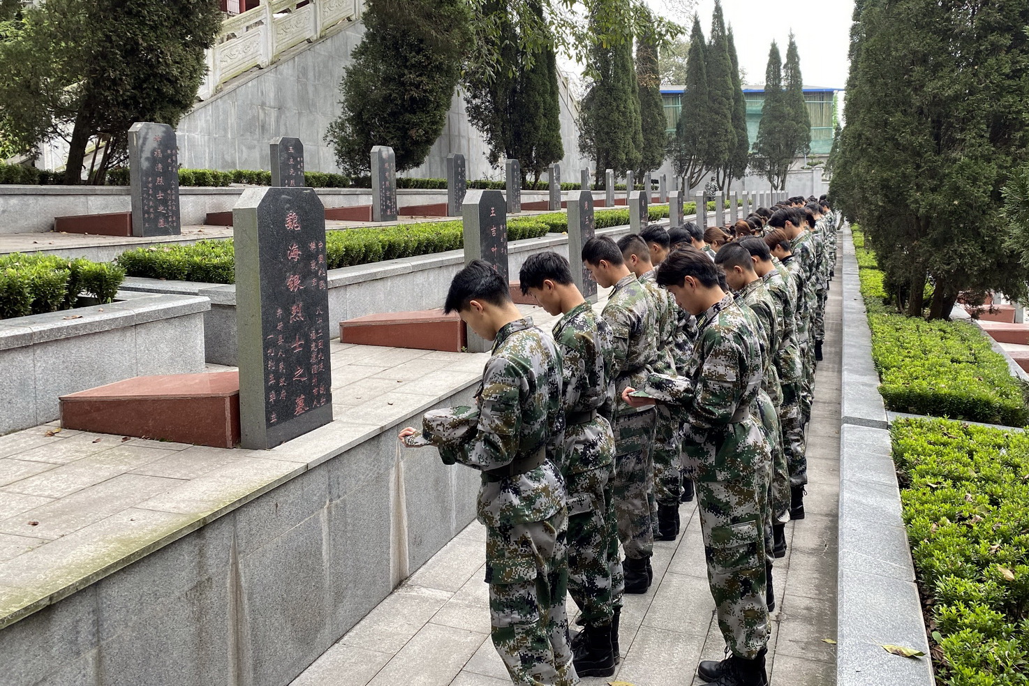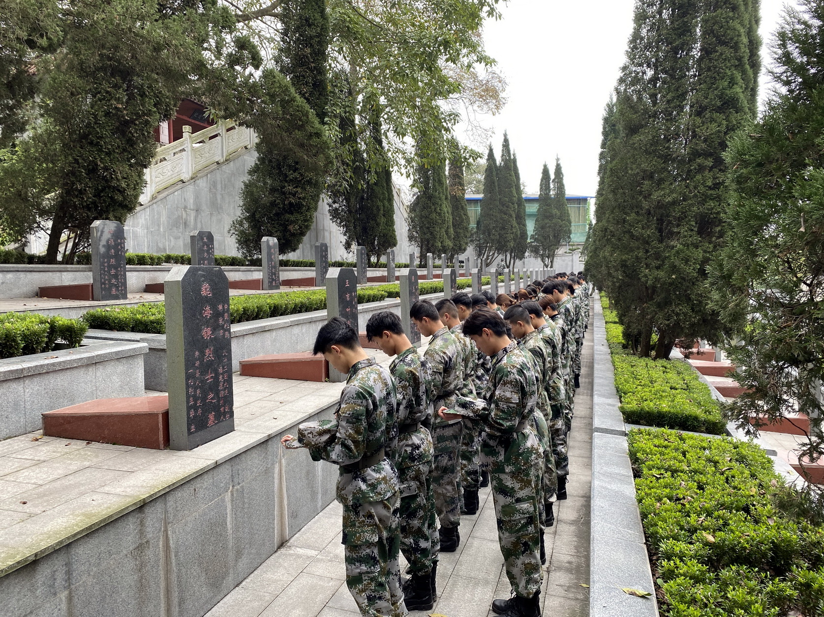 11月28日下午,beat365英国官方网站武装部组织民兵到井研县竹园铺战役纪念馆,接受爱国主义教育和红色教育,缅怀革命先辈的丰功伟绩,重温中国共产党艰苦卓绝的奋斗历程,激励民兵继承和发扬党的优良传统和作风。全体民兵在纪念碑前庄严宣誓,尔后瞻仰烈士陵园并默哀三分钟,并在烈士集体雕塑前向烈士致以崇高敬意。