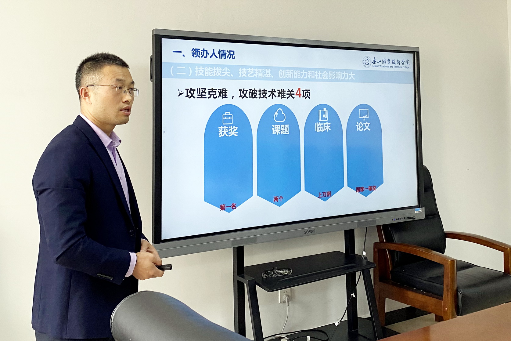 会上,陈芝海代表学院向专家组一行表示热烈欢迎,对市级部门长期对学院各项事业发展给予的热情关心和大力支持表示衷心感谢。接着,保健按摩(小儿推拿)技能大师工作室领办人向亚君介绍分别从领办人情况、团队构成、依托单位以及工作室特色逐一向专家组进行详细汇报。