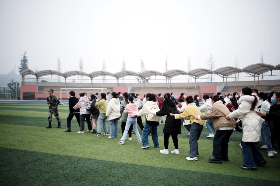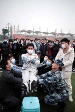 最后,民兵连总教官组织同学们进行了抗疫相关知识培训。全体志愿者整理仪容仪表后,由八位教官带领同学们进行团队建设活动。志愿者们在参加的各项团建活动中精神抖擞,认真学习,他们在寓教于乐的培训项目中,建立了相互信任,增强了大家的团队协作精神。