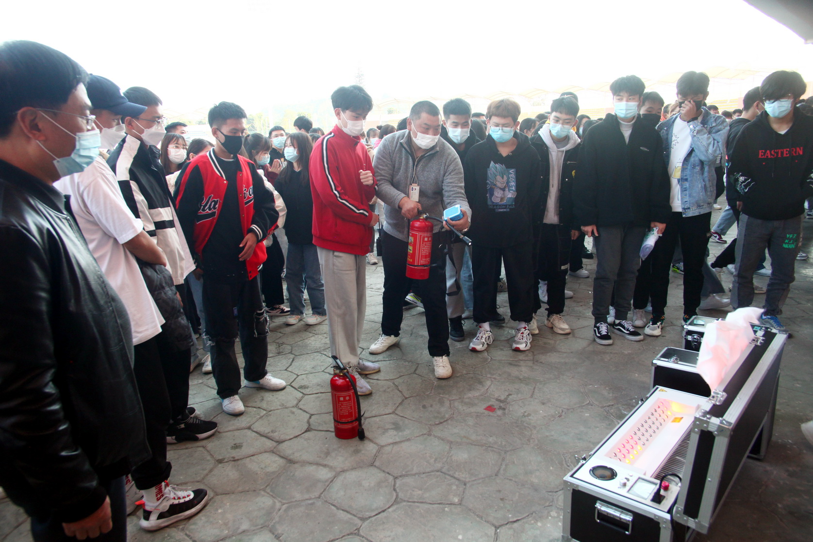 演练结束后,保卫处对学院首届志愿者消防队员进行了消防知识培训,并组织参观了消防器材展示活动。