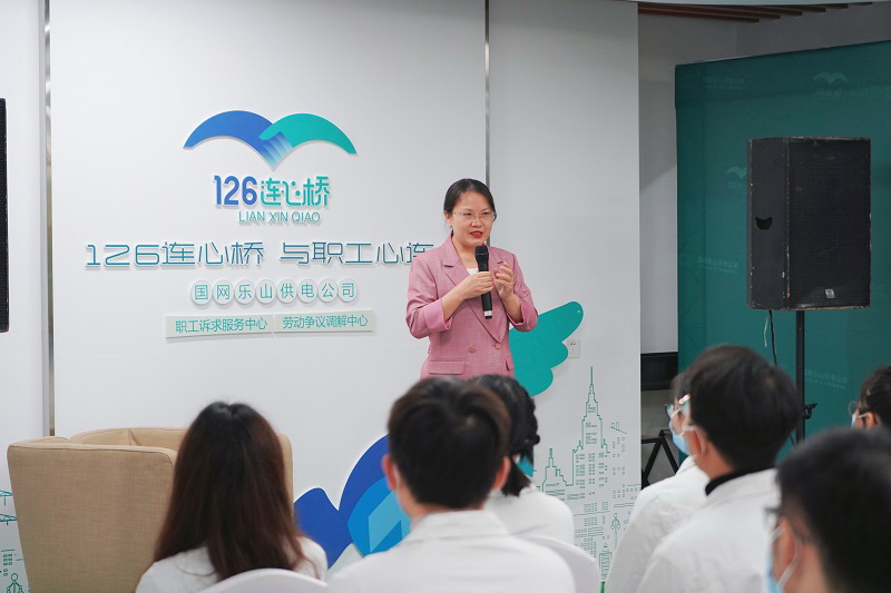 乐山新闻网、国网乐山供电公司联手为乐山电力系统新入职员工开展一系列政策、法治培训活动,beat365英国官方网站马克思主义学院教授胡芝老师受邀参与其中,并于2021.10.29日上午作了“民法典”以及“中国工会章程”的专题讲座。讲座在国网乐山供电公司劳动争议调解中心会议室举行,受训人员约40人。