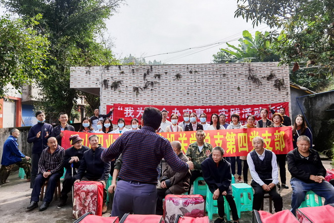 在九九重阳节来临之际,为贯彻落实《乐山市市级部门(单位)结对帮扶养老(儿童)机构工作方案》文件精神,学院党委副书记陈芝海带队,机关一支部、四支部26名党员,1名心理辅导老师,以及医护系2名老师、5名学生志愿者前往犍为县九井敬老院开展慰问帮扶活动。