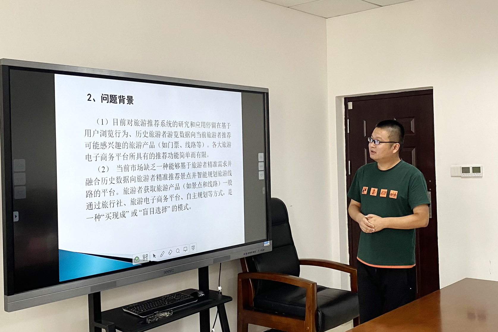 会议开始,科技处处长王丽介绍到会领导和专家,由专家组组长胡兵教授主持本次博士后开题报告。在博士后导师彭舰教授做周啸博士基本情况介绍后,周啸博士针对“基于景点元胞空间聚类及改进协同过滤算法的智能旅游路线推荐研究”课题,围绕研究背景和意义、研究现状及分析、研究内容、实施方案、预期创新点及难点、课题研究计划及成果等多个方面逐一向专家组进行了汇报。