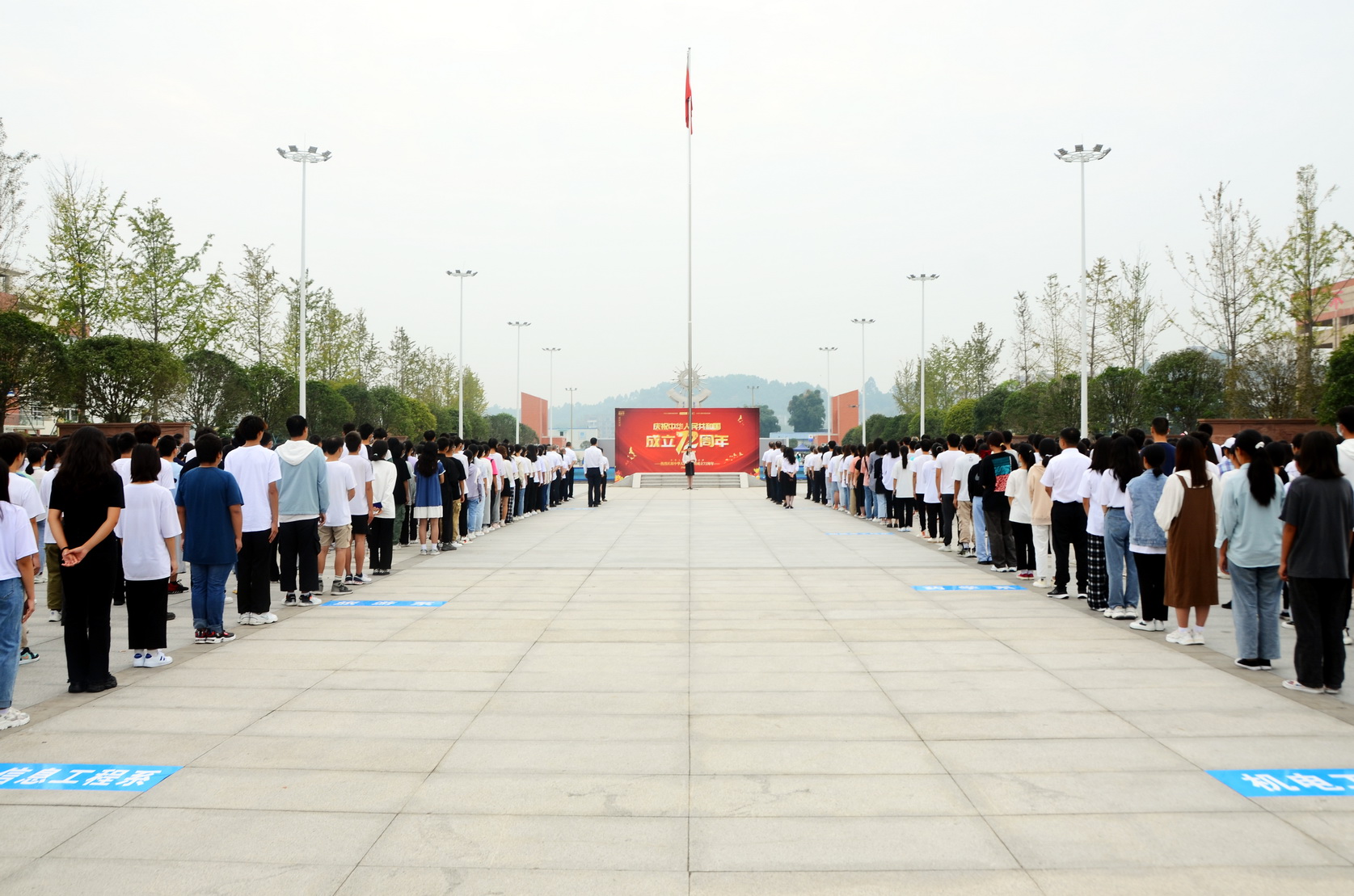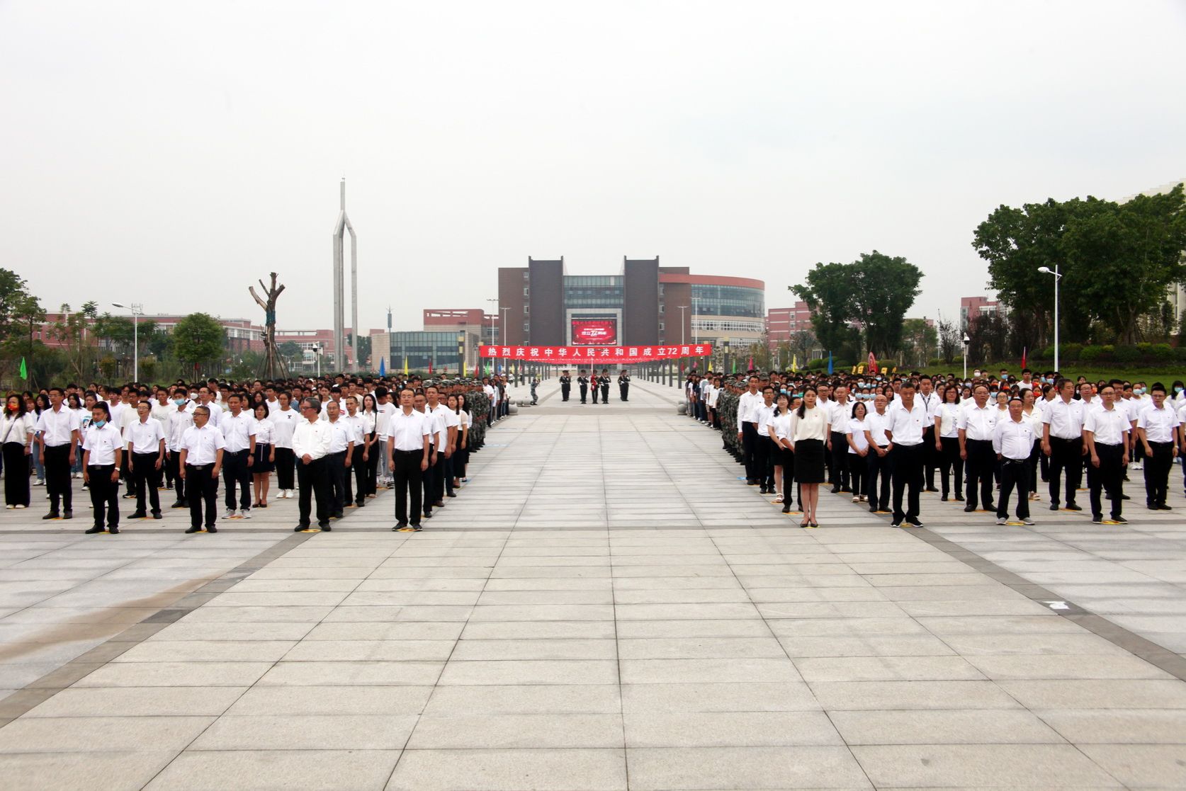 2021年10月1日早晨,beat365英国官方网站隆重举行2021年国庆升旗仪式,全院732名师生代表参加升旗仪式。