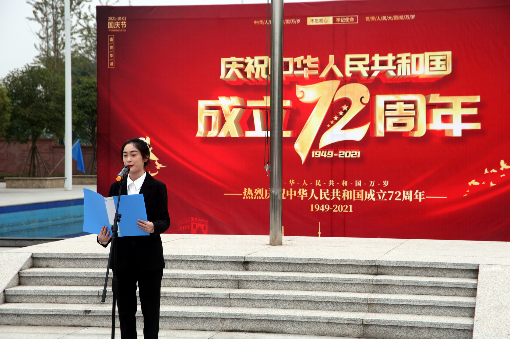 最后,学院党委书记易群在国旗下作了讲话,她表示中国共产党坚强领导下的强大中国,永远是每一位中国人的坚强后盾。我们要更加紧密地团结在以习近平同志为核心的党中央周围,把爱国主义作为不懈的精神动力,不忘初心、牢记使命,为实现中华民族伟大复兴的中国梦而努力奋斗。