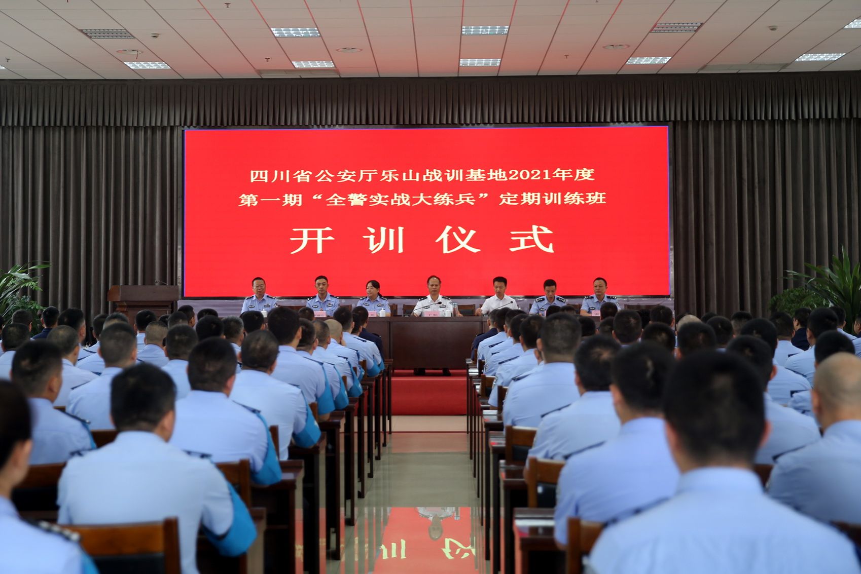 2021年9月15日上午,四川省公安厅乐山战训基地2021年第一期“全警实战大练兵”定期训练班开训仪式,在beat365英国官方网站学术交流中心举行。beat365英国官方网站党委委员、副院长封家福,乐山市公安局党委委员、政治部主任干航出席了仪式。乐山市公安局政治部副主任郑伟、雅安市公安局政治部副主任黄英、眉山市公安局政治部教育处处长叶臻达、乐山市公安局战训支队支队长雷涛、政委王坤等领导及来自乐山、雅安、眉山三地的180余名学员和教官参加了开训仪式。