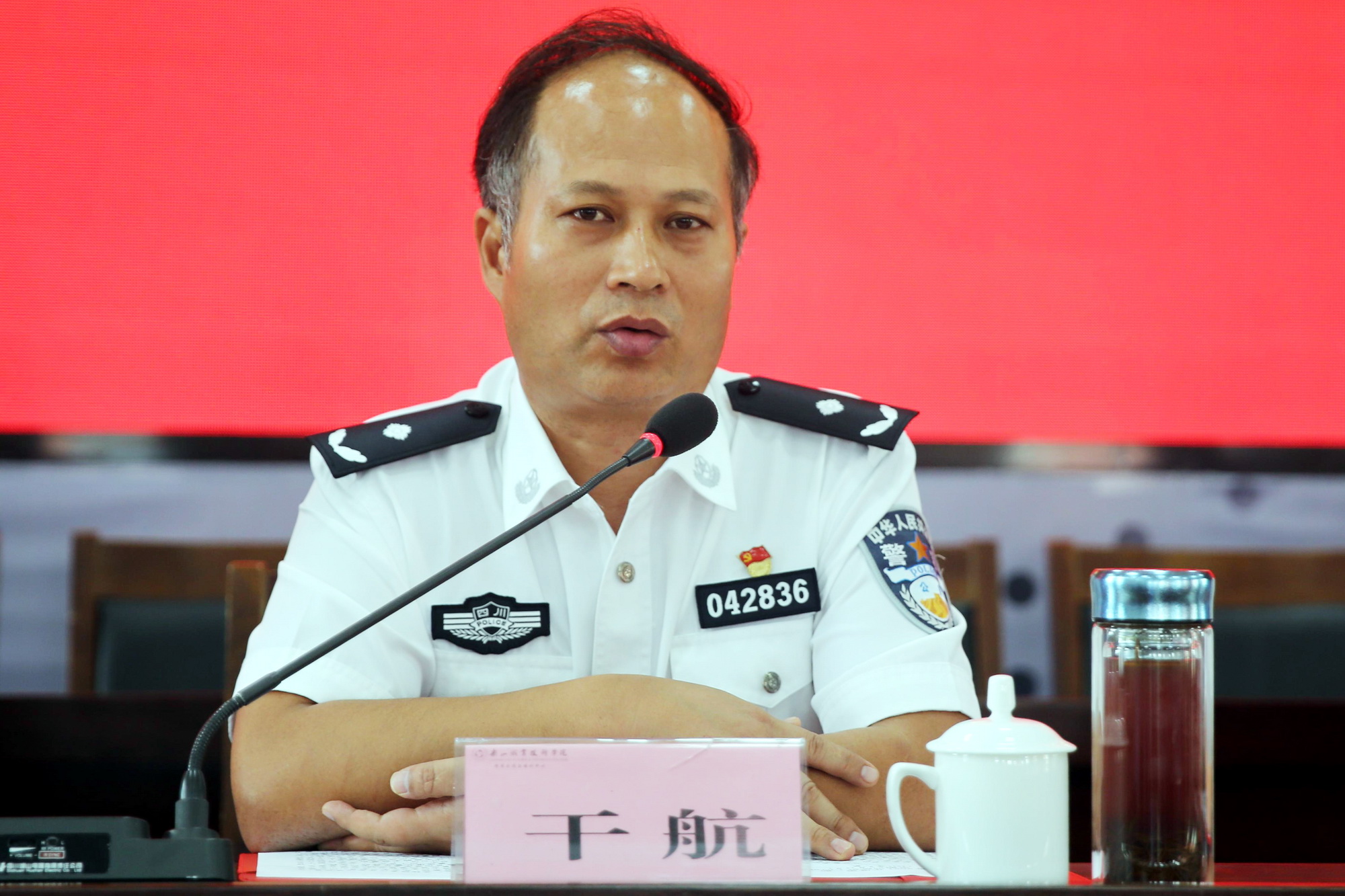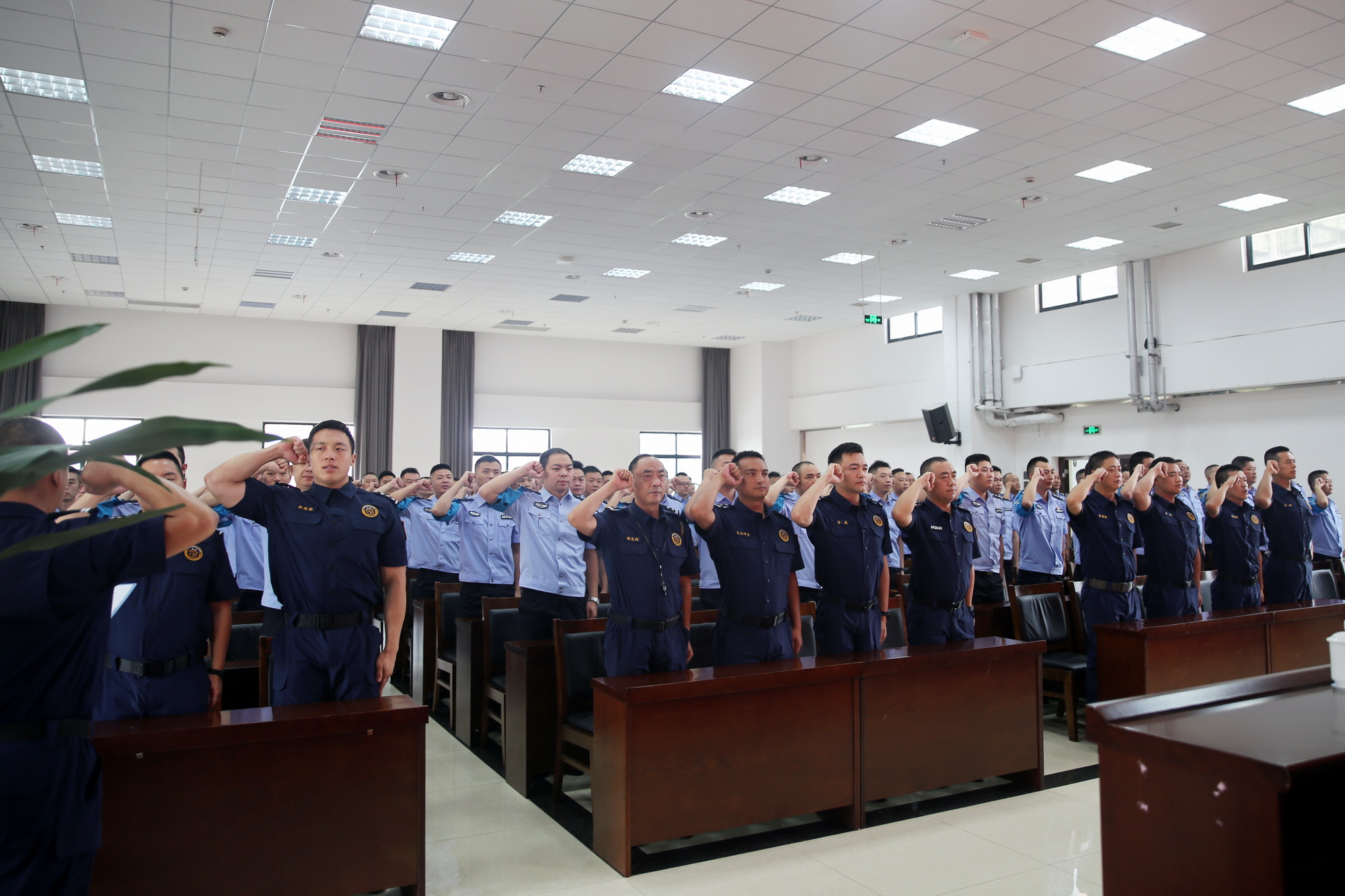 仪式在庄严的国歌声中拉开序幕。全体参训民警警容严整,面向警旗,重温了入警誓词。