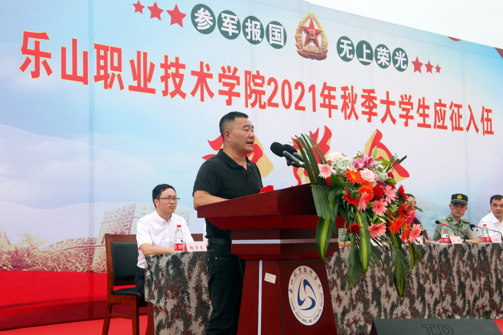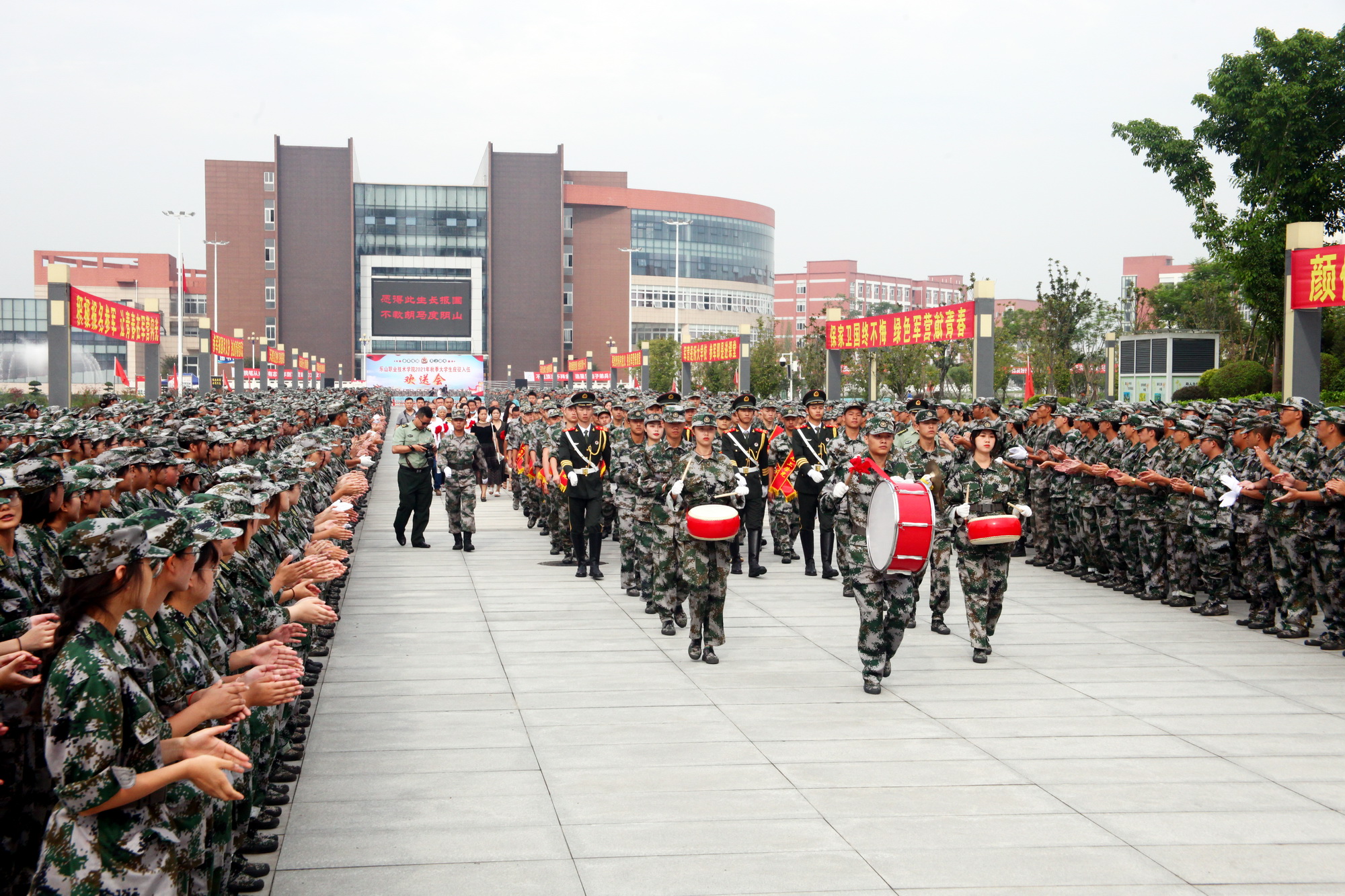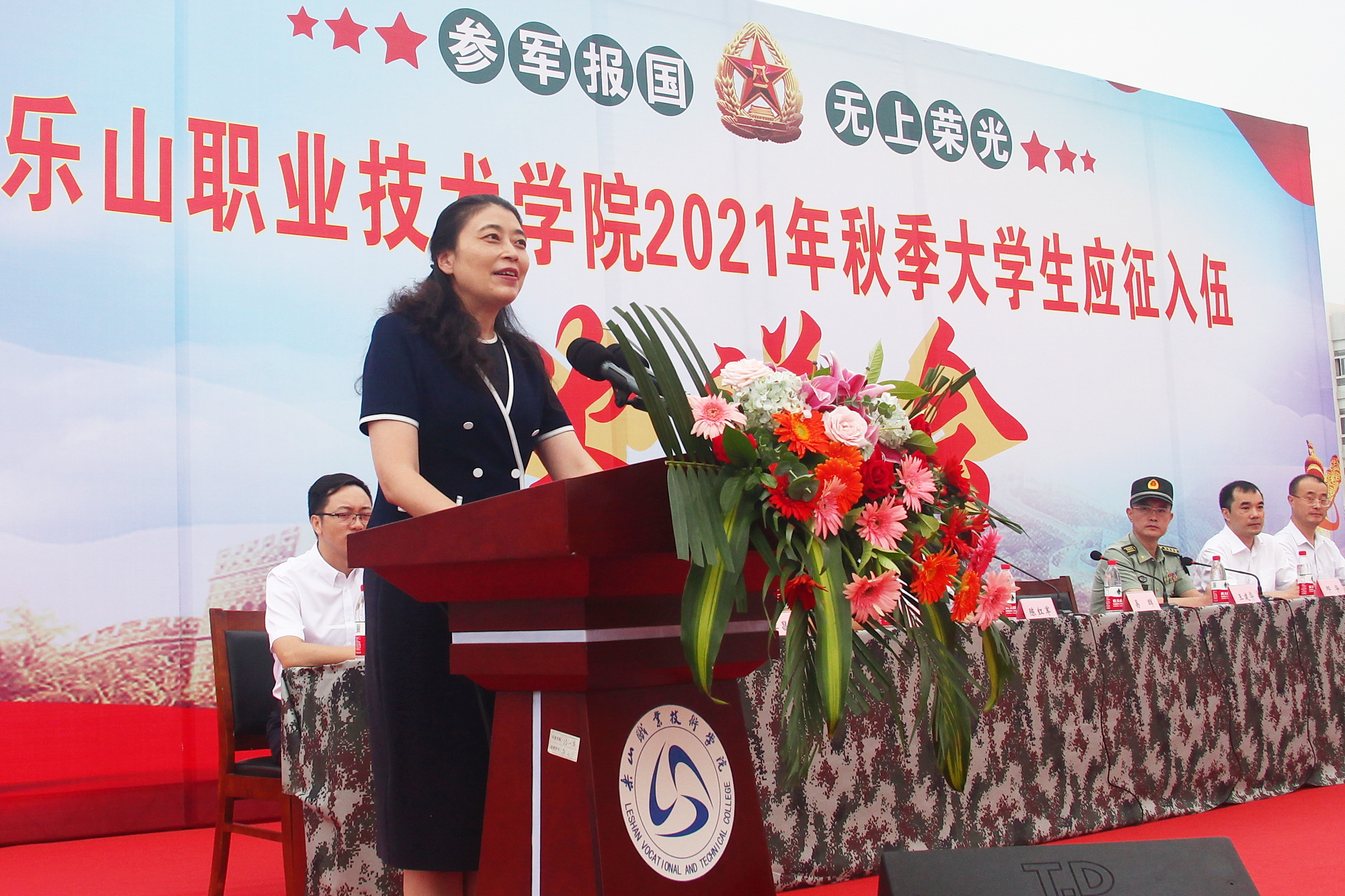 beat365英国官方网站42名大学生通过层层考核,即将以秋季新兵的身份启程奔赴军营,开启军旅生涯。9月10日上午,学院在明德广场召开2021年秋季新兵入伍欢送会,中共乐山市委常委、军分区司令员王建华,市政府副市长邓华,市政府副秘书长陈红军,军分区动员处处长陈登文,市中区武装部政委田旺清,学院领导及相关处室负责人,系(部、院)书记、专职副书记出席了欢送活动。