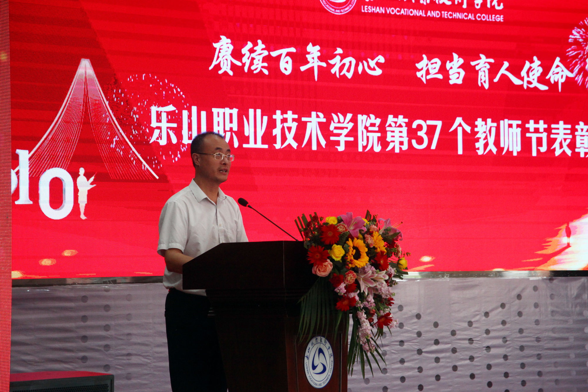 院长刘忠致辞,他代表学院向全院教职工表达了节日的问候和崇高的敬意,对学院一年来所取得的成就作了总结,强调全院上下要在学院党委的坚强领导下,继续以“四有好老师”为标准,做好“四个引路人”,坚守“为党育人、为国育才”初心使命,承载好“传播知识、传播思想、传播真理,塑造灵魂、塑造生命、塑造新人”的时代重任,为加快建设高水平职业技术大学继续奋斗。