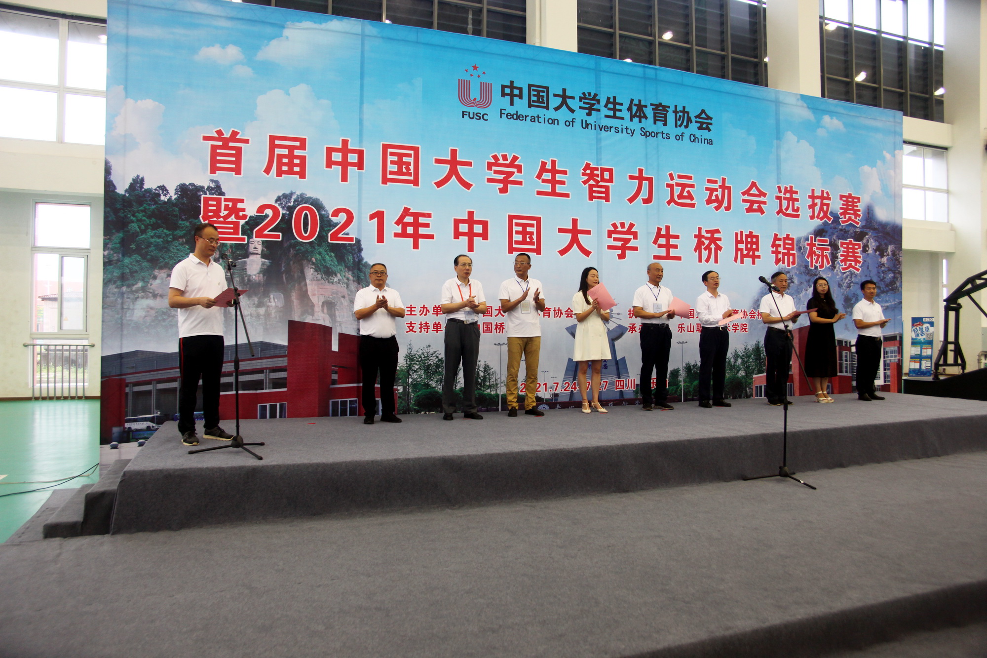 2021年7月24日上午,beat365英国官方网站体育馆热闹非凡,首届中国大学生智力运动会选拔赛暨2021年中国大学生桥牌锦标赛在此隆重开幕。中国大学生体育协会桥牌分会主席沈超、中国大学生体育协会桥牌分会副主席蹇路,四川省教育厅体卫艺处副处长江岷霞,乐山市人民政府副秘书长兰守奇,乐山市教育局副局长周芹,学院副院长张学河、封家福等领导参加开幕式。开幕式由beat365英国官方网站院长刘忠主持。