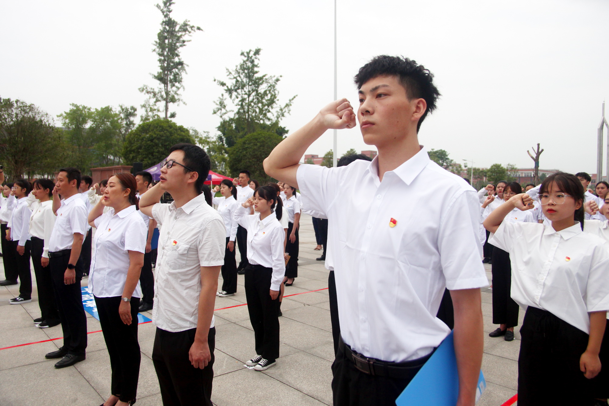 为热烈庆祝中国共产党成立100周年,学院组织开展七一新党员代表集中入党宣誓活动。学院党委书记易群、党委副书记陈芝海,各党总支书记、专职副书记、新党员所在党支部书记,新党员代表参加宣誓活动,活动由党委副书记陈芝海主持。