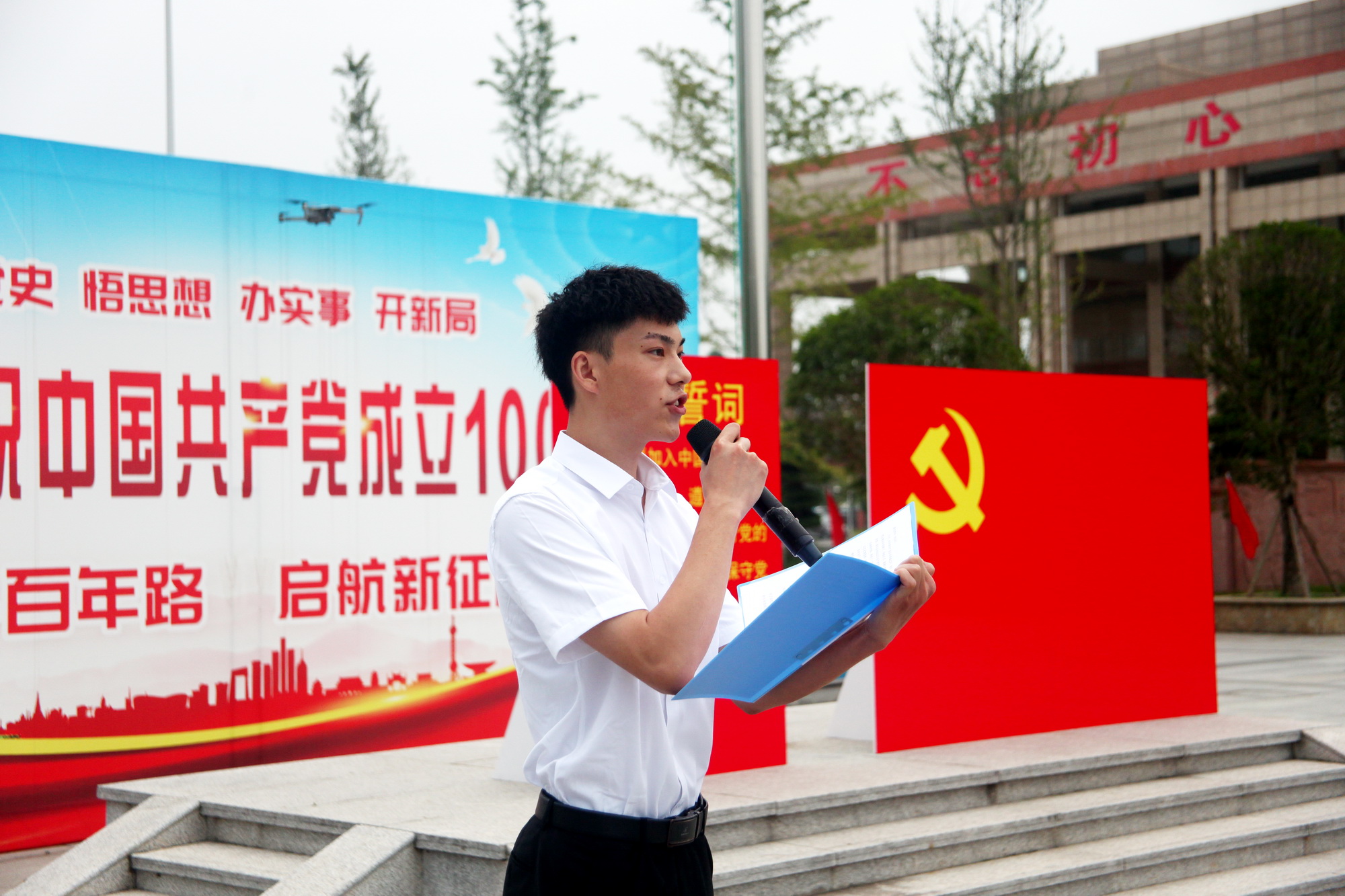 易群书记代表学院党委,向在中国共产党成立100周年之际光荣入党的新党员表示热烈的祝贺。她表示入党誓词是《中国共产党章程》的重要内容,是党员入党时对党和人民作出的庄严政治承诺,是党员为党奋斗终身、献身党的事业的誓言和座右铭。她希望所有新党员要终身牢记自己在党旗下所立下的誓言,坚定理想信念,深入学习贯彻习近平新时代中国特色社会主义思想,不仅在组织上入党,更在思想上入党;要始终对党忠诚,增强“四个意识”、坚定“四个自信”、做到“两个维护”,铁心跟党走、矢志不移;要践行党的宗旨,站稳人民立场,坚守人民情怀,密切同人民群众的血肉联系;要担当时代重任,从党的百年奋斗史中汲取前进力量,学史明理、学史增信、学史崇德、学史力行,立足本职岗位,充分发挥先锋模范作用,为壮丽的共产主义伟大事业和实现中华民族伟大复兴的中国梦作出新的更大的贡献。