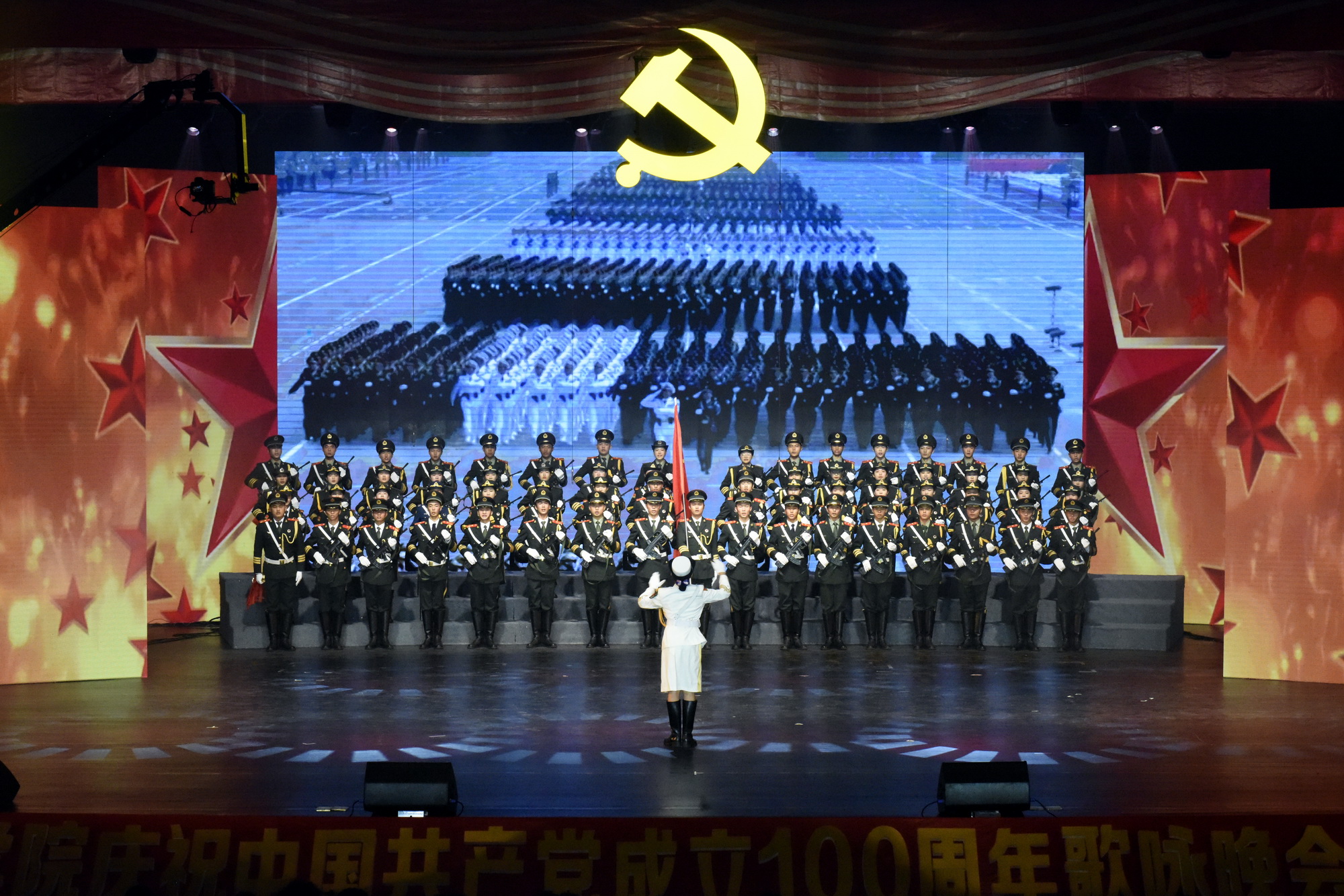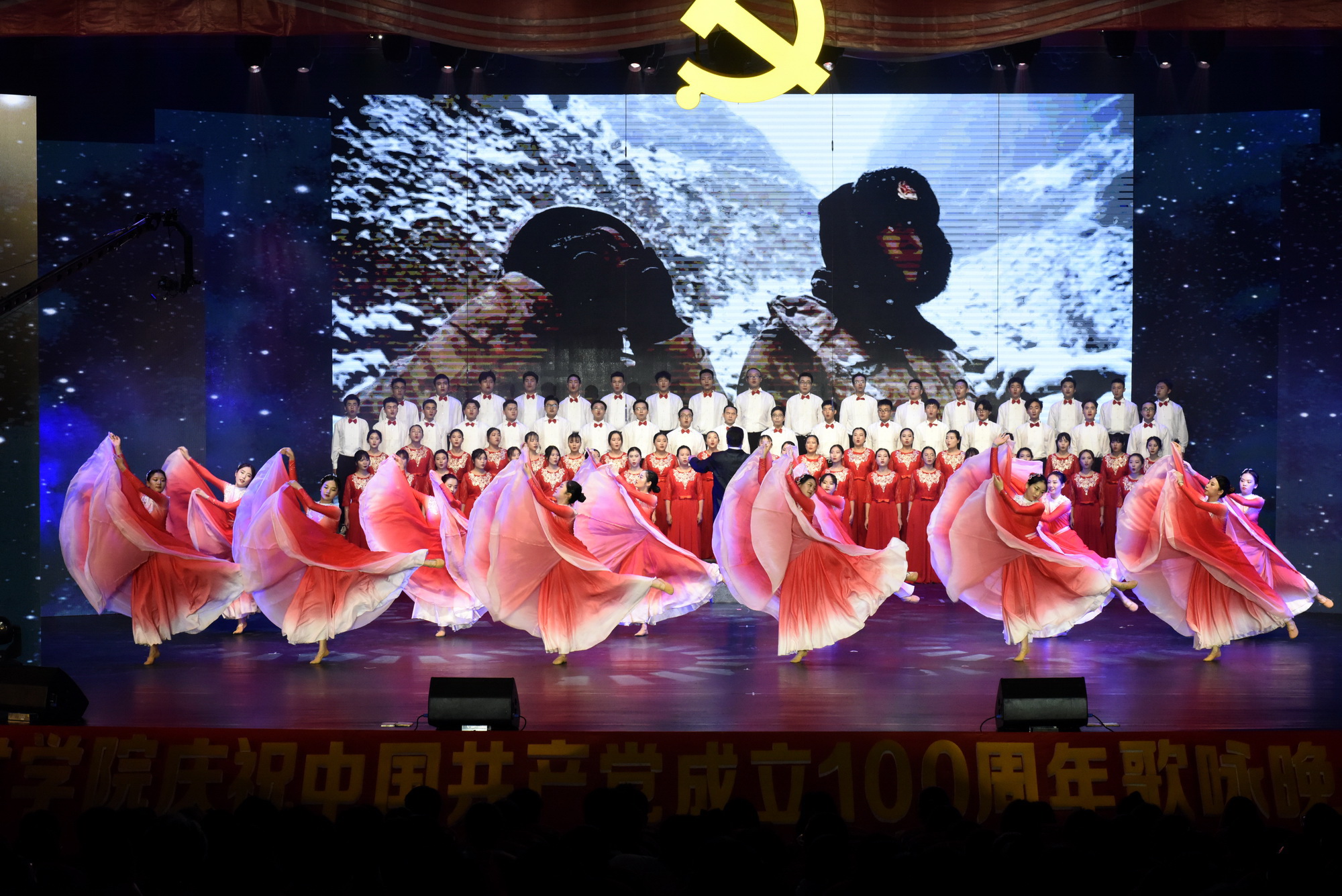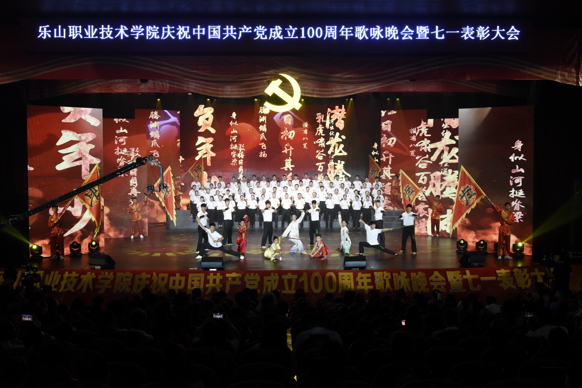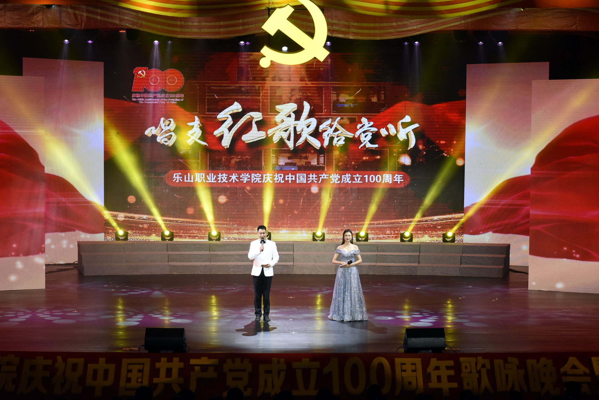 2021年6月30日晚,全院教职工、学生代表1700余人共聚学院礼堂,学院庆祝中国共产党成立100周年歌咏晚会暨“七一”表彰大会隆重举行。