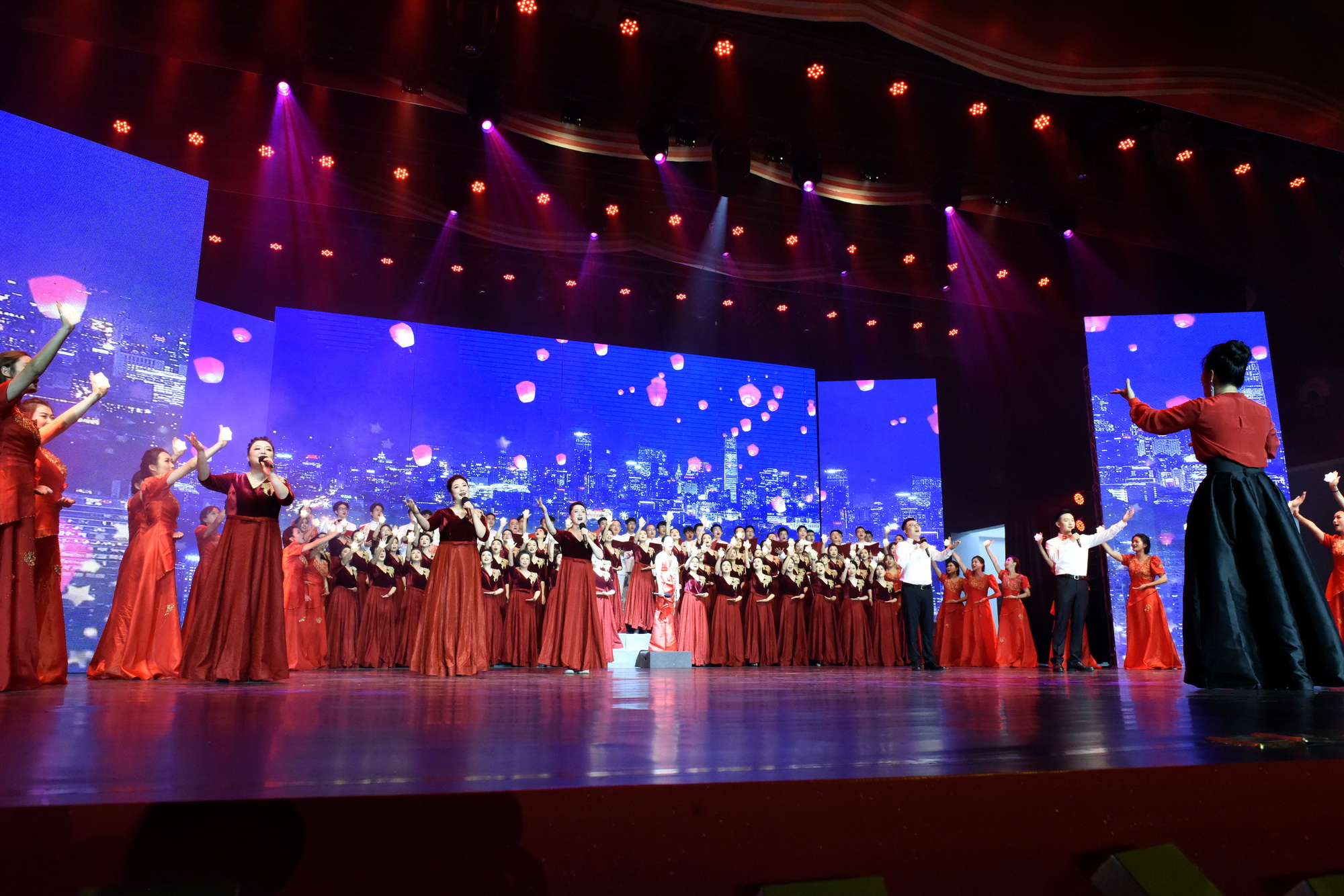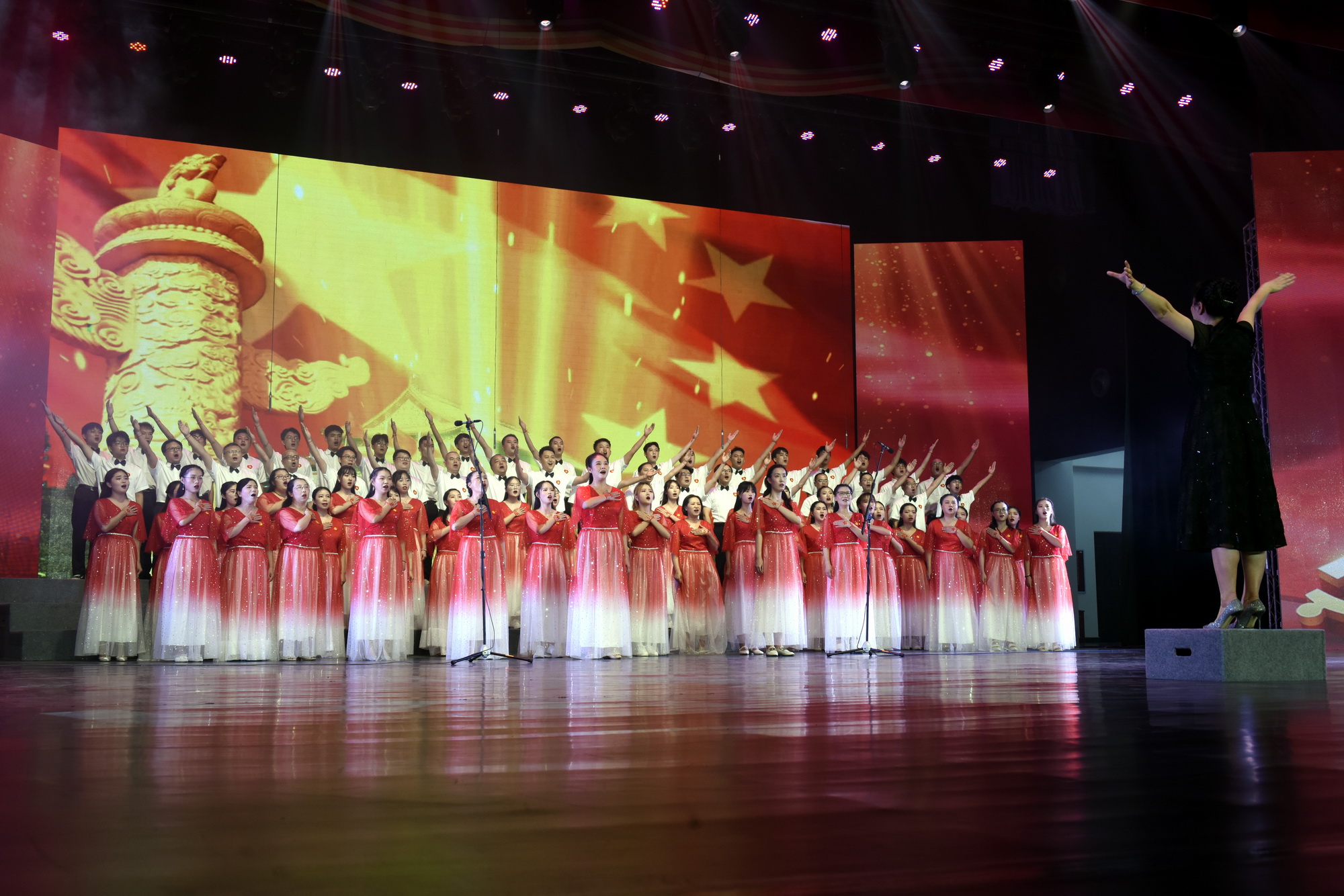1000余名师生组成的12支队伍,放歌三江,为中国共产党成立100周年献上最诚挚的赞歌。从《唱支山歌给党听》《我们都是追梦人》到《我的中国心》《祖国不会忘记》,从《清澈的爱 只为中国》《少年》《在希望的田野上》《中国》《男儿当自强》《灯火里的中国》《强军战歌》《梦想星光》到推向高潮的《走向复兴》《没有共产党就没有新中国》,十四首脍炙人口的红色歌曲,唱出了乐职人对党最深的赞美之情。