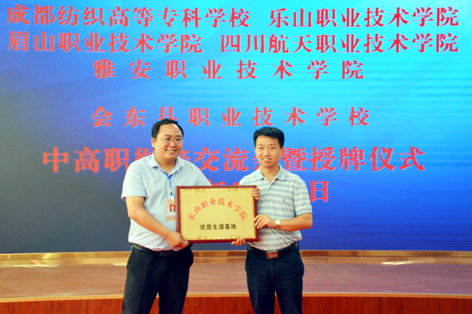 授牌仪式上,封家福向会东县职业技术学校授予了“优质生源基地”牌匾。会东县职业技术学校校长马良武表示,将以共建“优质生源基地”为契机,搭建双方沟通交流的桥梁,精诚合作、携手共进,积极促进中等教育与高等教育的接轨。