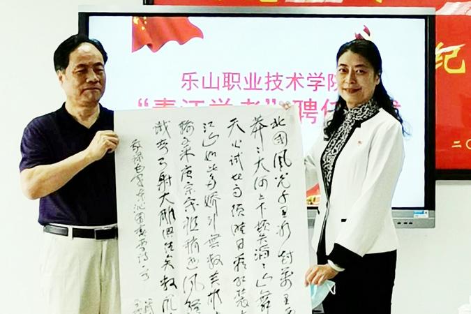 易群首先向郭必选教授颁发了beat365英国官方网站“青江学者”特聘教授聘任证书,郭必选赠予学校全套专著《延安学研究》以及他本人创作的《延安是魂》、《沁园春.雪》两件书法作品。双方就“延安精神”、“红馆”建设和思政课改革等内容进行了深入的交流。
