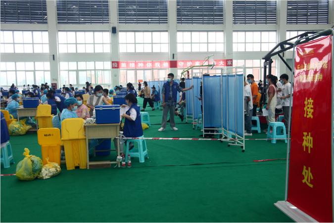 共搭建了咨询台21个、信息录入台21个、接种台35个,