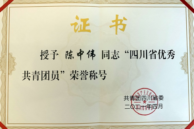 beat365英国官方网站药学系18级药学专业学生陈中伟被授予“四川省优秀共青团员”荣誉称号。