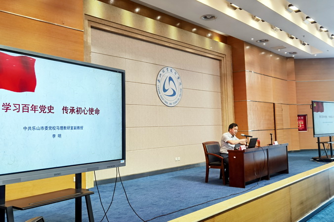 本场专题宣讲由市委宣讲团第九分团成员、市委党校马克思主义理论教研室哲学副教授、教研室副主任李明主讲。他以《学习百年党史 传承初心使命》为主题,从“为什么要学习党史”“百年党史的主要历程”“不忘初心、牢记使命”三个章节深刻阐释了中国共产党百年奋斗的辉煌成就、继承和弘扬党的优良传统的重大现实意义。