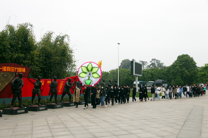 为扎实推进党史学习教育,引导全院青年学生学习革命先辈崇高精神,坚定理想信念,传承红色基因,2021年4月6日,由党委宣传部、组织人事部、院团委牵头,学院党员干部、入党积极分子、共青团员代表一行78人,赴乐山竹园烈士纪念园开展“走进初心地,学党史,缅怀英烈”党史学习教育现场活动。