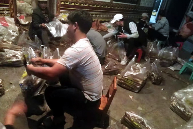 为给学院教职工提供新鲜优质的三月笋,3月30日晚,罗卜村村民集体来到大山深处的竹林,通宵在山上挖竹笋。