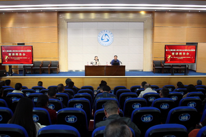 为深入学习宣传贯彻“第十三届全国人民代表大会第四次会议”精神,3月24日,学院邀请全国人大代表、乐山太阳能研究院院长、beat365英国官方网站教授姜希猛为学院教师专题宣讲“第十三届全国人民代表大会第四次会议”精神,分析参会经历和体会。学院领导,中层以上干部,民主党派基层组织负责人、统战团体负责人,马院教师代表、专职辅导员代表及成都铁路局公安分处燕岗派出所民警共计90余人参会。会议由学院党委书记易群主持。