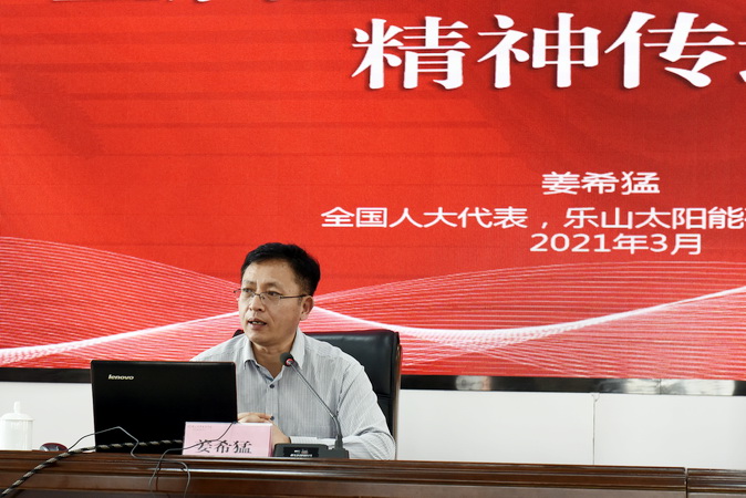 姜希猛在报告会上对两会的基本情况、习近平总书记在四个代表团的讲话精神、大会通过的主要报告、四川代表团履职情况和其个人的履职情况进行了宣讲,让大家对两会有了更直观的认识和了解。其中,姜希猛在两会期间共提出34件建议,其中27件与所从事的低碳新能源行业相关。