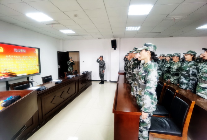 大会在雄壮的《中国人民解放军军歌》声中拉开帷幕,全体民兵庄严宣誓,大会总结表彰了2020年先进民兵个人及优秀教官。在过去一年中,学院武装部积极谋划,确保我院民兵完成多样化、复杂化任务的同时大力开展相关针对性训练,旨在通过大练兵提高民兵连整体战斗力,形成处置校园安全稳定突发事件的中坚力量,并成功完成地方政府国庆执勤及每日升降国旗等重大任务。