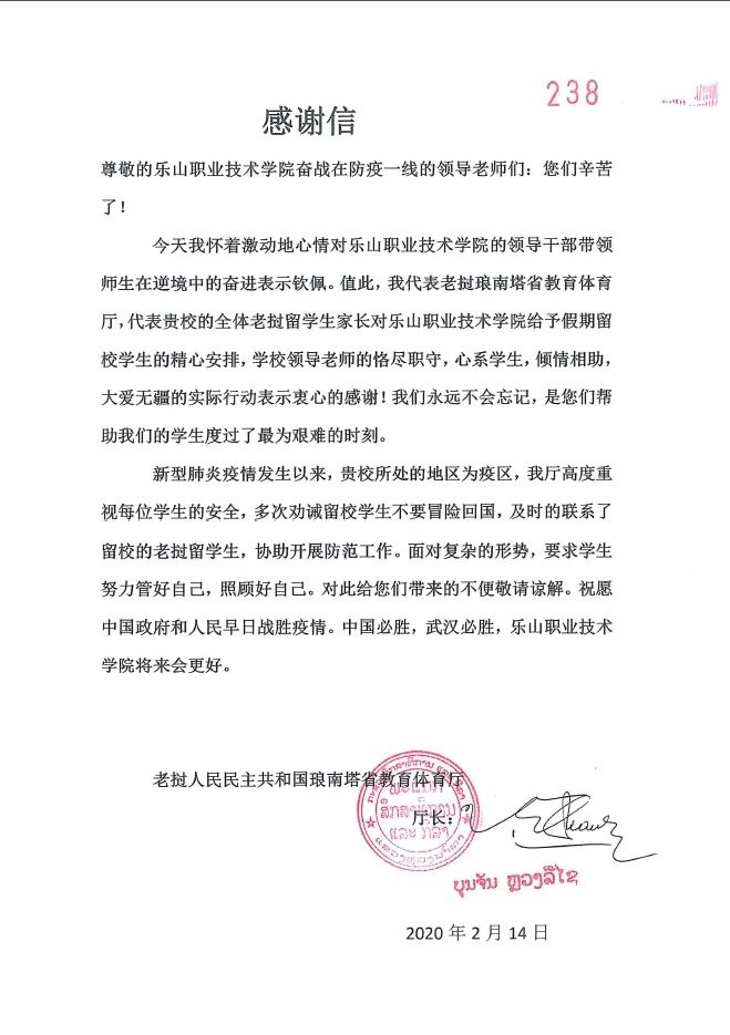 如果说疫情是一场没有硝烟的战争,那张晶晶老师也是其中的“逆行者”。疫情期间beat365英国官方网站就收到来自老挝琅南塔省教育厅、世界越南柬埔寨老挝(亚洲)华人团体联合会等单位的慰问和肯定。