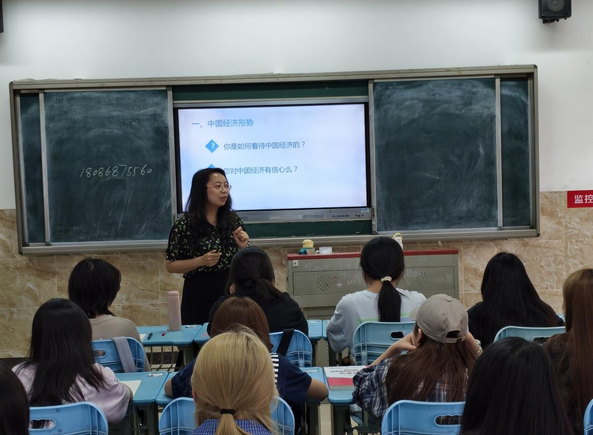 2025年6月4日下午,学校党委委员、副校长周芹为动画影视动画24-1班学生讲了一堂主题为“中国经济与就业形势”的形势政策课。该班学生全员参加。